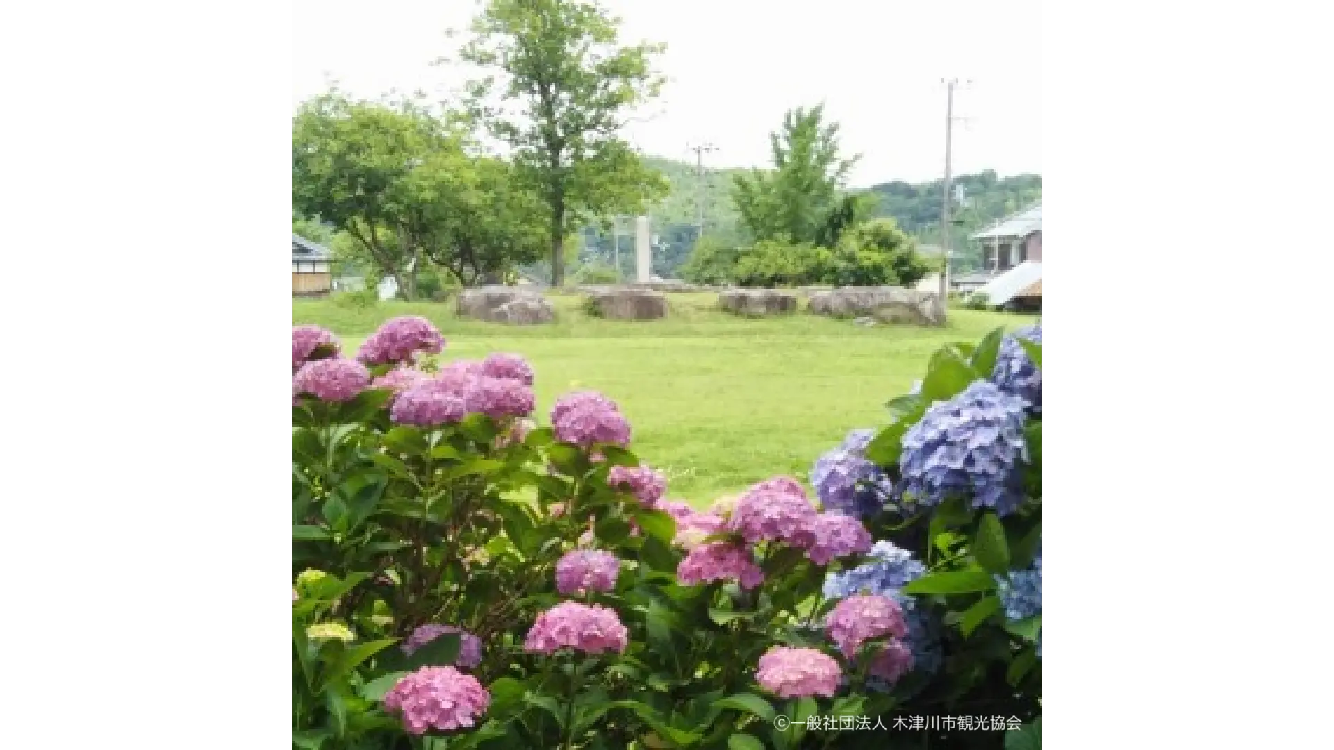 約1300年前、木津川右岸に「恭仁宮(くにのみや)」が造られ、わが国の首都となりました。現在は大極殿(金堂)礎石と七重塔礎石が残っており、初夏には約80株のあじさいが花を咲かせます。ぜひ歴史を感じながらあじさいをお楽しみください。