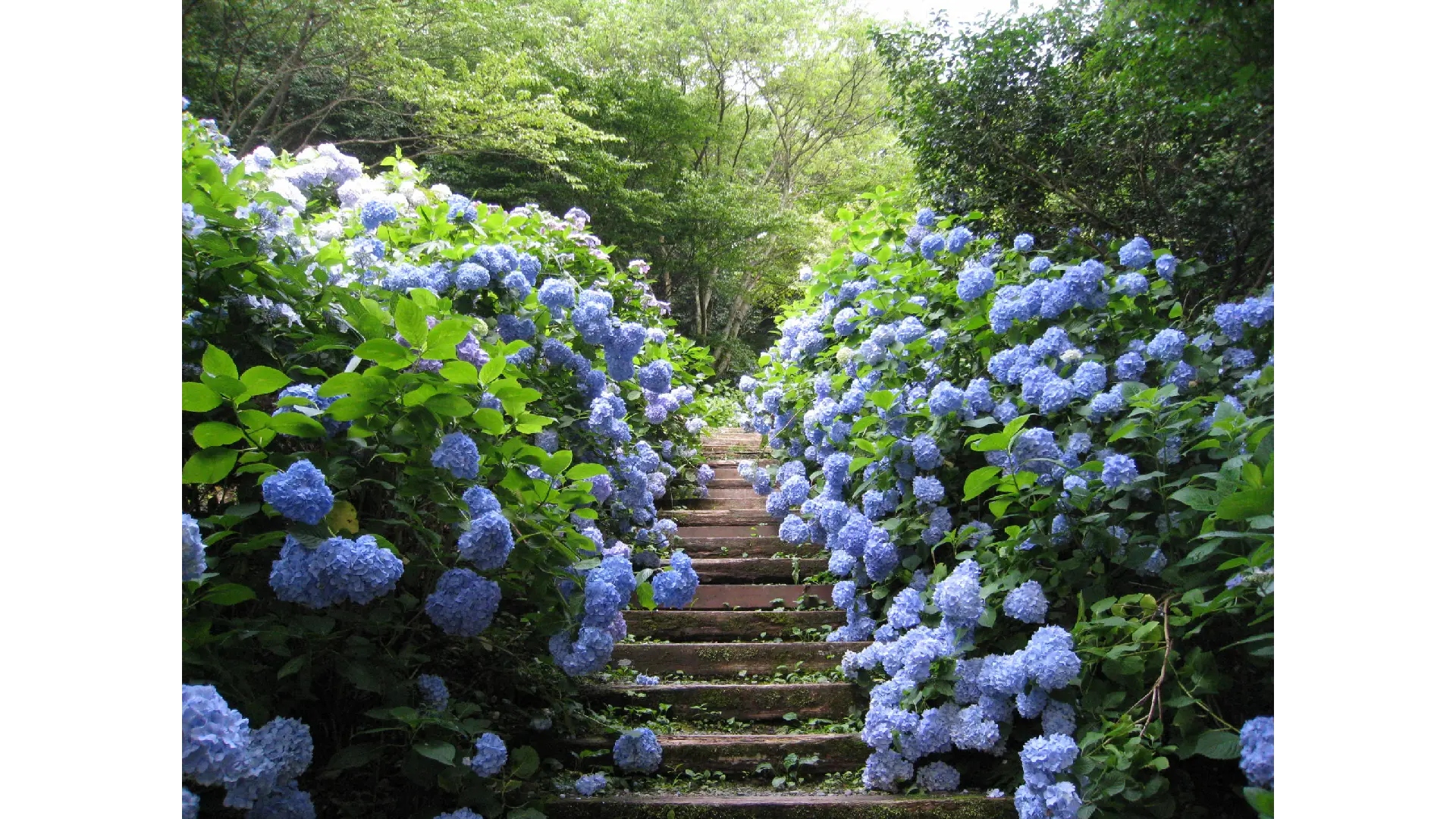 生駒山頂近くにある府民の森ぬかた園地のあじさい園では1500mのあじさいプロムナードで30種類以上2万5000株のあじさいが咲き競います。