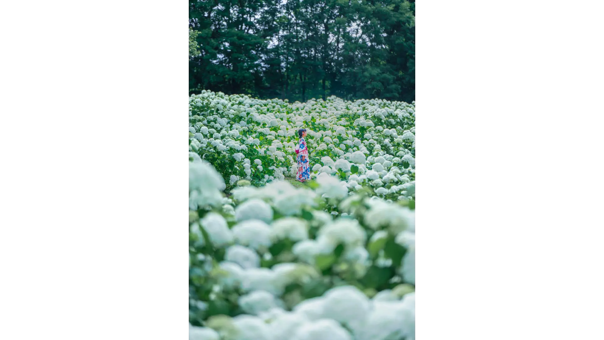 2000株のアナベル(西洋アジサイ)が咲くエリア「アナベルの森」では真っ白で大きくふんわりとした花房があふれるように咲き誇ります。また梅雨葵とも呼ばれるタチアオイとアジサイの共演をご覧いただけます。