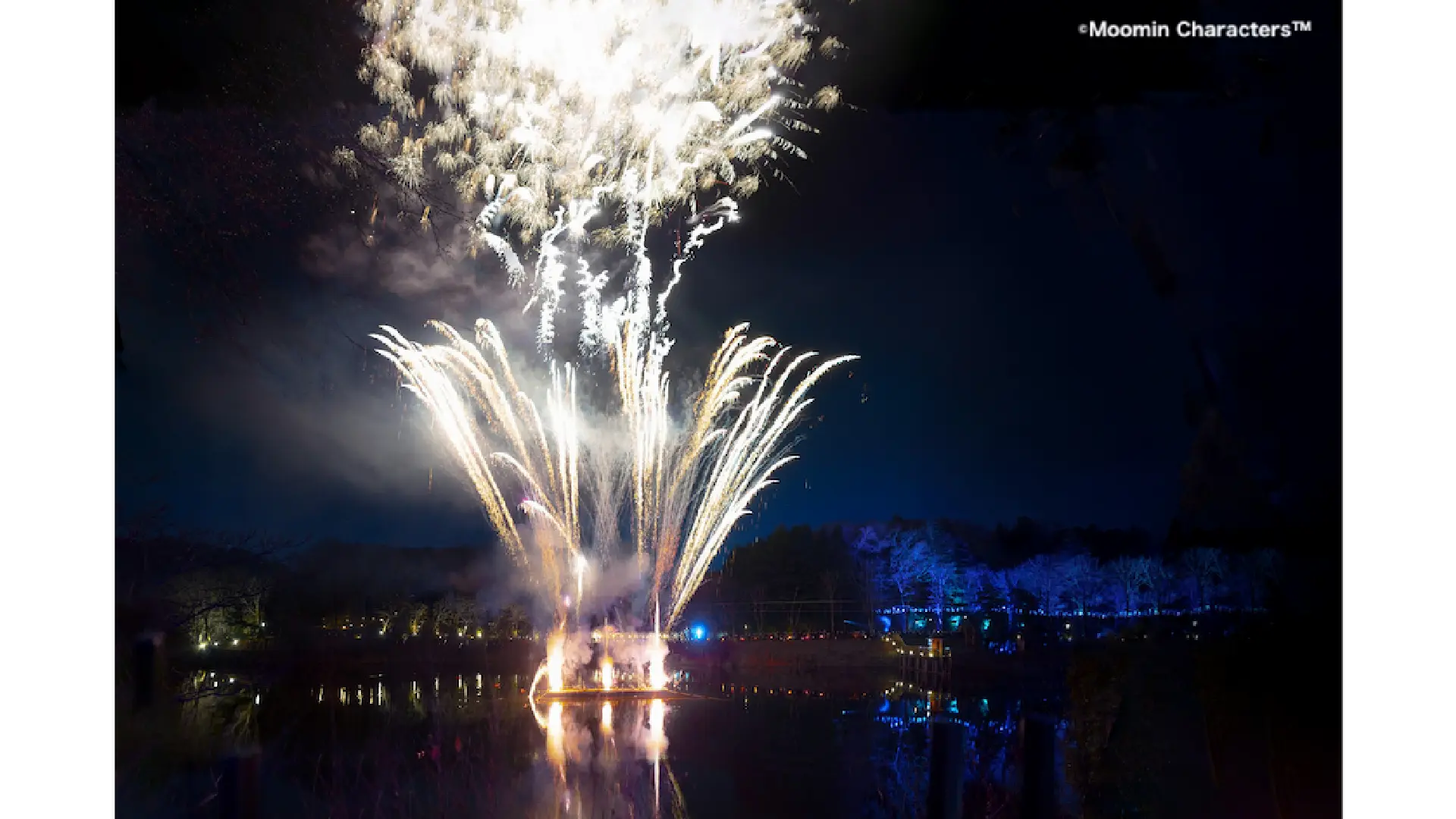むーみんだにのこじょうはなびたいかいムーミン谷の湖上花火大会