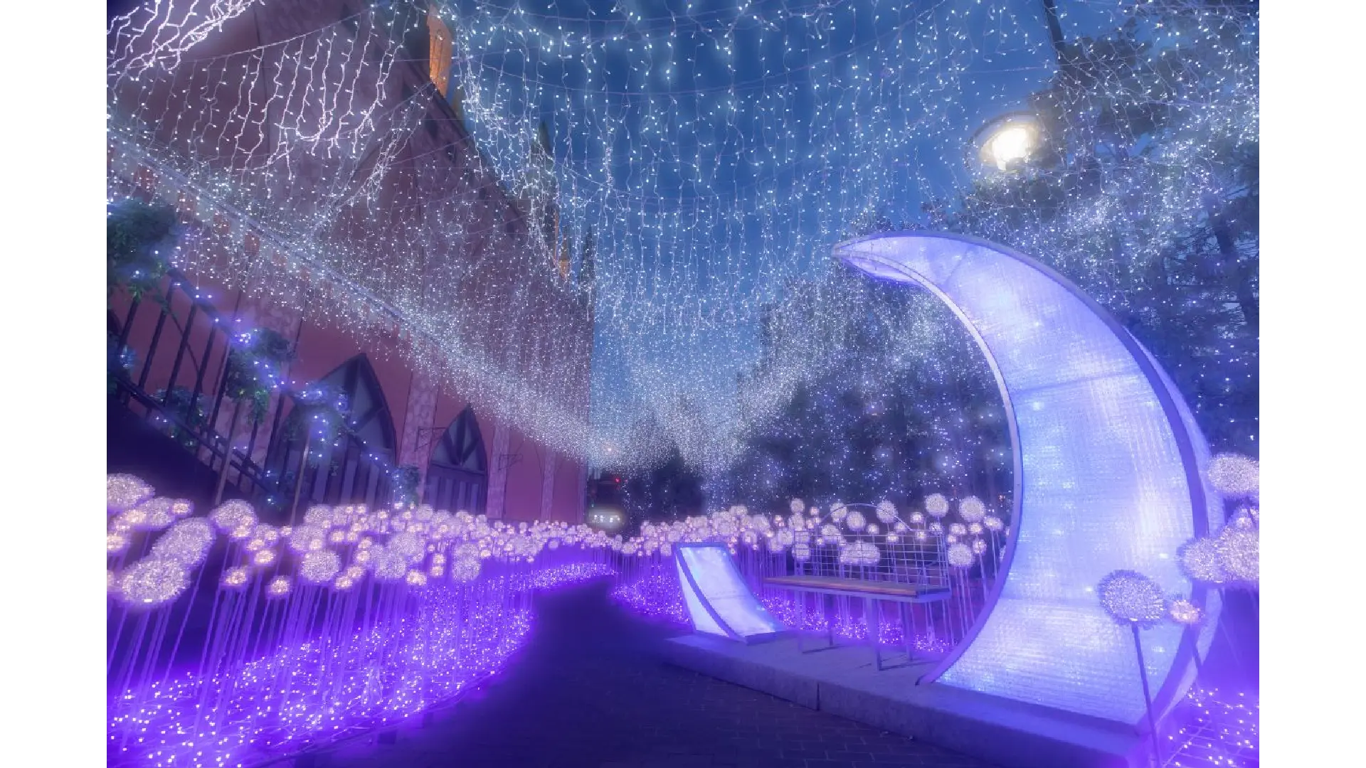 光が織りなす幻想的なガーデン。願いを込めると叶うといわれる「三日月」は幸運のスポットです。