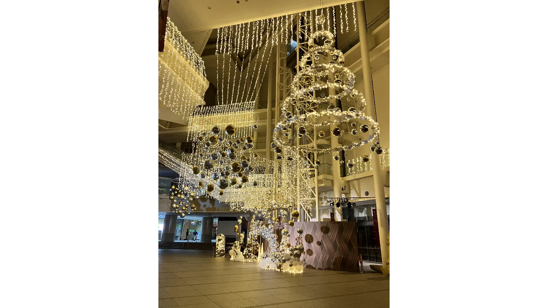 青と白の光を基調としたイルミネーションで、広場全体を演出。雪の結晶や星形のオーナメントが飾られ、雪が積もる2月には、よこて雪まつりに合わせ「かまくら」「ラブかま」(入り口がハート型に電飾された「かまくら」)も作られ、ロマンチックな雰囲気を楽しめる。