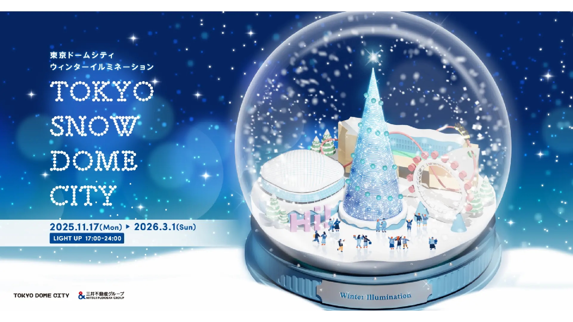 21回目の開催となる今冬は、昨年の約65万球から大幅にスケールアップし、合計約100万球のLEDライトで装飾を施します。「スノードーム」や「雪」をテーマに、東京ドームシティ全体が華やかな白い光に包まれます。今年は、前回ご好評いただいたラクーアガーデンのスノードームがパワーアップし、スノードームの中に東京ドームシティをイメージしたジオラマが登場。ベルを鳴らすとジオラマの街並みが様々な冬の景色に変化する幻想的な体験をお届けします。そのほか、見どころのひとつである高さ約15mの巨大なメインツリーでは、約25万球のLED ライトが様々な色に変化し、15分に1度、シャボン玉と音の特別演出も実施します。また、12月の期間限定で、「北欧のクリスマス」をテーマにしたイベント『TOKYO DOME CITY Nordic XmasPark 2025』を開催します。沢山の光で輝く、この冬だけの特別な東京ドームシティをお楽しみください。