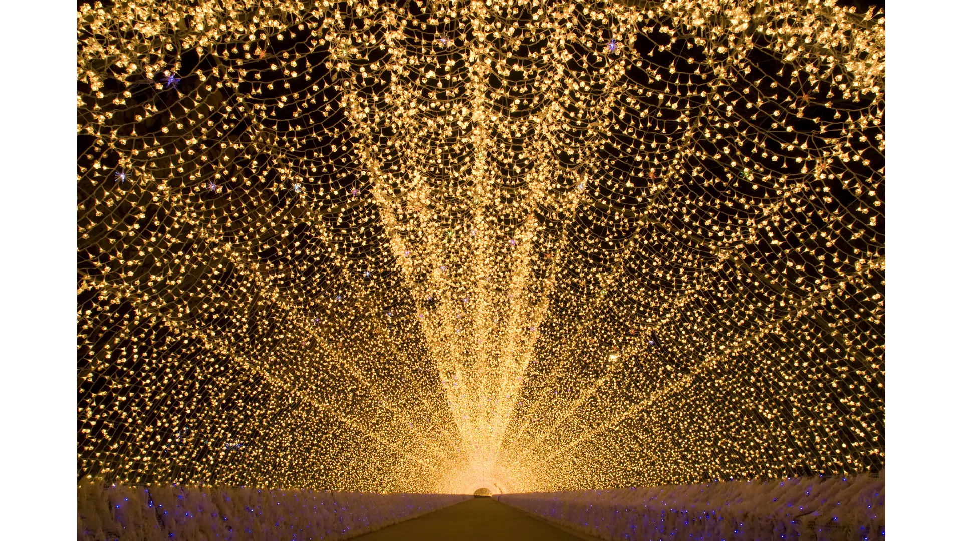 今回のテーマエリアは黄金の国『ジパング』。マルコ・ポーロの『東方見聞録』に記された黄金に輝く島国伝説をはじめ、葛飾北斎や歌川広重に代表される浮世絵文化の世界観、四季折々の美しい日本の原風景を、大胆な構図と鮮やかな色彩でダイナミックに描き出します。 その他、人気の200mの「光のトンネル」、水上イルミネーション「光の大河」、「ツインツリー」をはじめ、新登場の100 mの光のトンネル「波」、光り輝く立体的な花壇「ランタンガーデン 光の花畑」など見どころ盛りだくさんです。※12/23~25はクリスマス特別営業を実施。日付指定の前売券の購入が必要です。