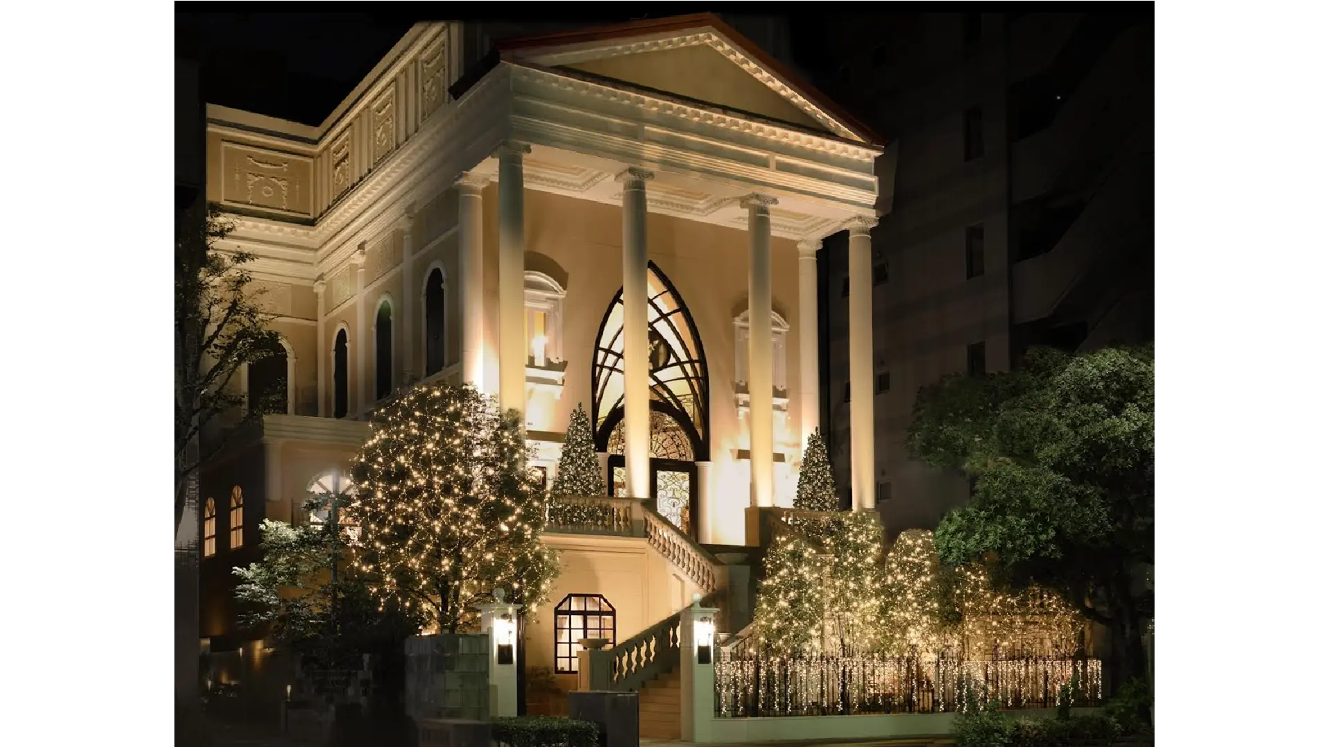赤坂ル・アンジェ教会はイルミネーションの温かな光に照らされ、幻想的な雰囲気に包まれます。歌声が美しく響き渡る礼拝堂の中でクリスマスソングを楽しめる「ゴスペルコンサート」や無数のキャンドルが大理石のバージンロードに美しく輝く「キャンドルナイト」などを開催(一部は有料イベント)。大切な人と心温まるひとときをお過ごしください。