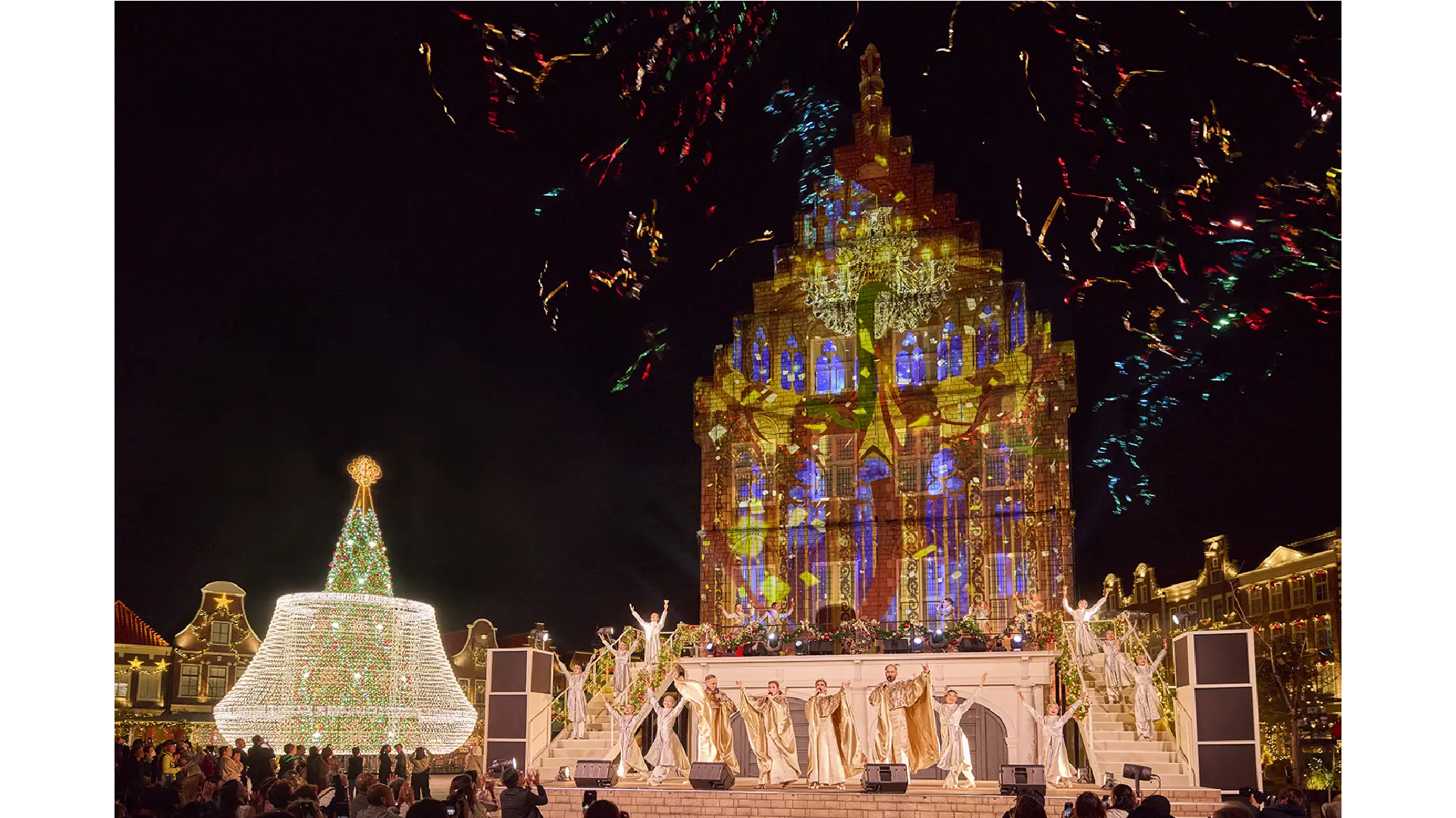 本物のヨーロッパの街並みが360度クリスマスオーナメントで埋め尽くされる「クリスマススクエア」が今年も登場。そのクリスマススクエアに新たに登場するのが、無数の光とクリスタルが重なり合い圧倒的な輝きを放つ、シャンデリアを模したクリスマスツリーとして日本初の「グランド・シャンデリアツリー」。今までにないクリスマスツリーが、壮麗な輝きで街を一層煌めかせます。 また、日本初のグランド・シャンデリアツリーを中心に、毎晩、圧巻のナイトショー「メロディー・オブ・クリスマス」が開催されます。クリスマススクエア全体に響き渡る聖歌隊の美しい歌声に合わせてグランド・シャンデリアツリーが点灯すると、辺りが今までに見たことがないほどの光に包まれます。心が震える感動とともに、記憶に残る聖なるクリスマスの夜をお届けします。今年のクリスマススクエアでは沢山のクリスマスショップが一堂に会する「クリスマスマーケット」がパワーアップして開催。オーナメントやリースなどの華やかなクリスマス装飾に囲まれて、本場ヨーロッパのクリスマスフードやドリンク、ショッピングなどが楽しめます。さらに、クリスマスにしか出会うことができないサンタクロースのグリーティングも行われます。本格的なヨーロッパのクリスマス体験に満ちたクリスマススクエアで、大切な人と特別なひと時をお過ごしいただけます。