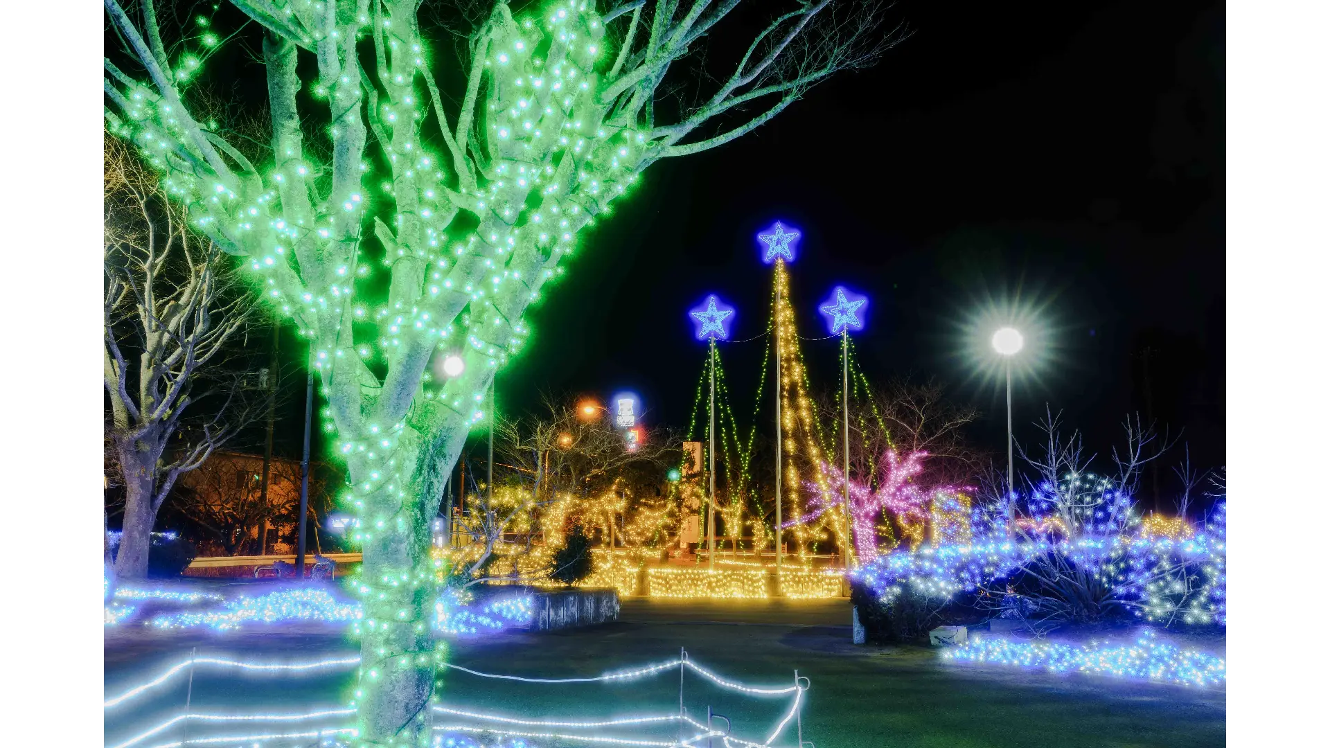 旭市の冬といえば「スターライトファンタジー」。旭市海上公民館前及び旭市海上出張所前を会場に開催されます。イルミネーションにより、色とりどりにライトアップされた樹々と美しい光のオブジェが旭の冬を幻想的に彩ります。