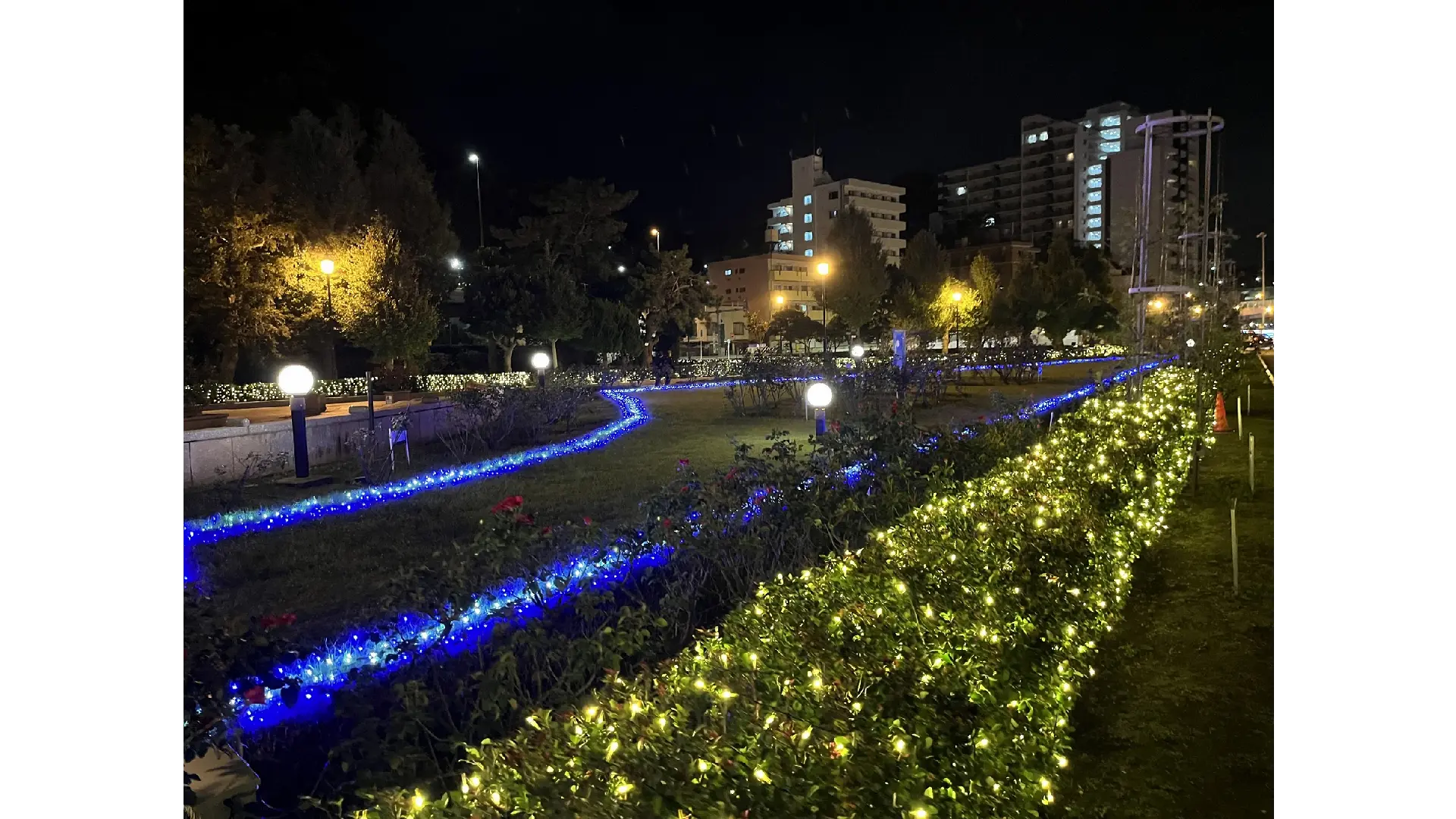 オレンジ色に染まるヴェルニー公園の夜景を、シャンパンゴールドを基調としたイルミネーションで彩ります。