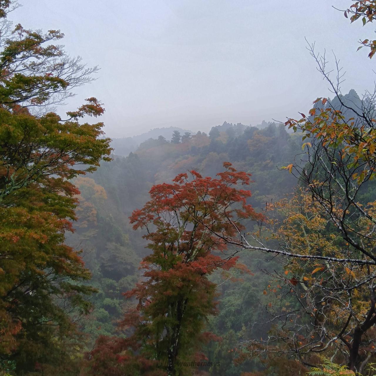 養老渓谷 展望台より雨上がり一部紅葉しています🍁海外からの観光客の方もバスで一緒でした。