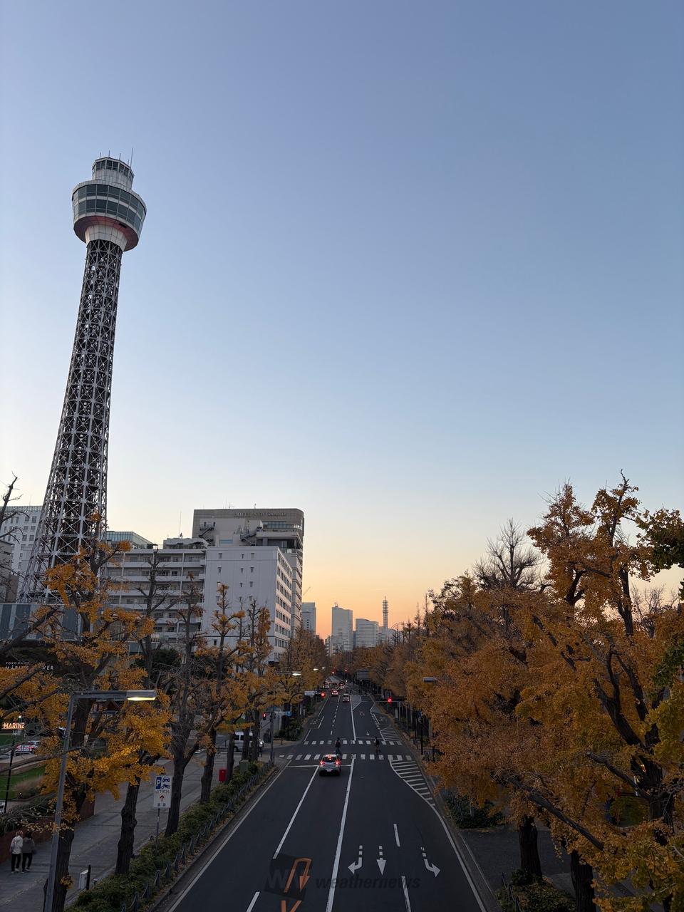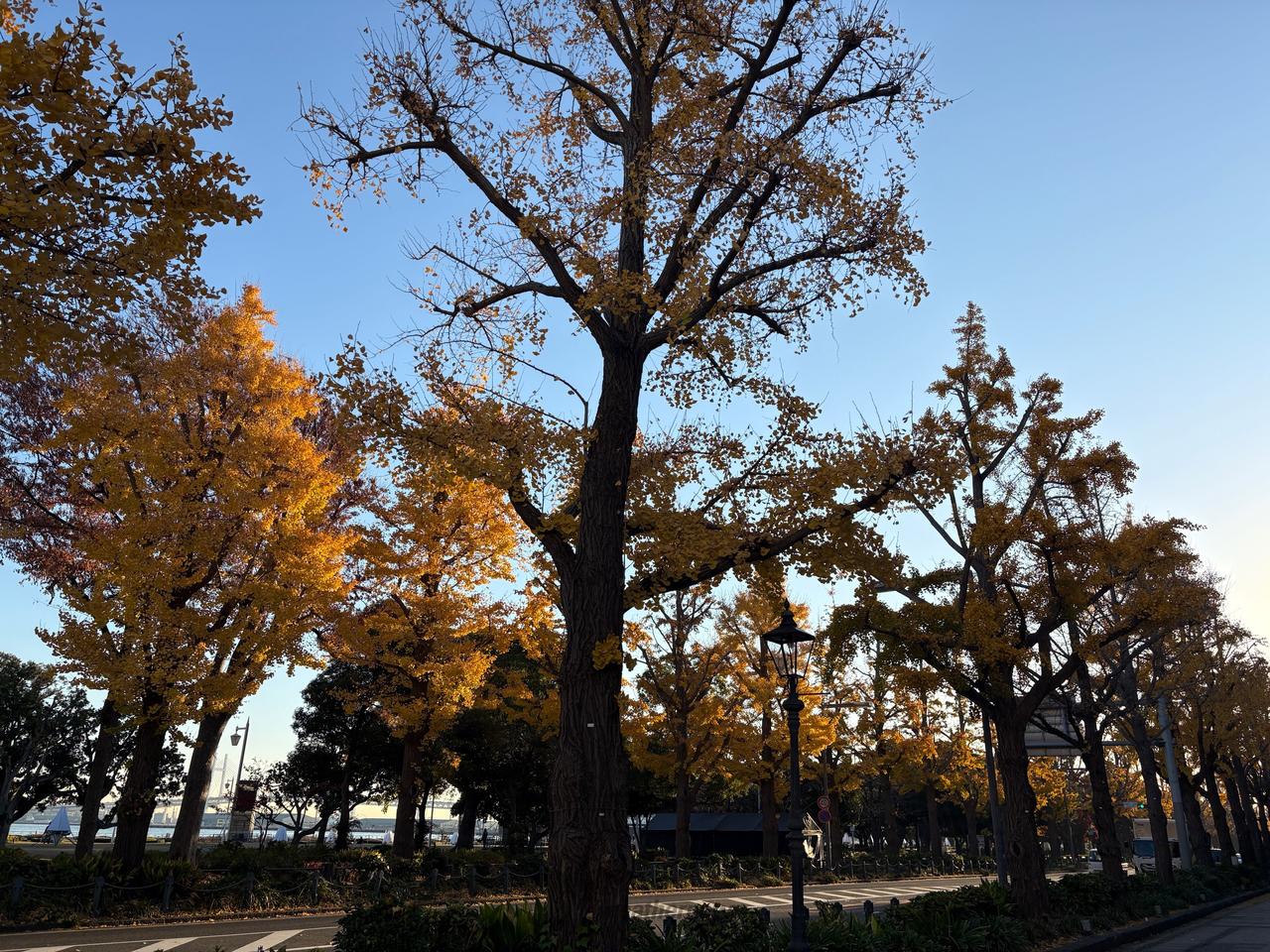 最新の紅葉リポート(山下公園通りイチョウ並木)