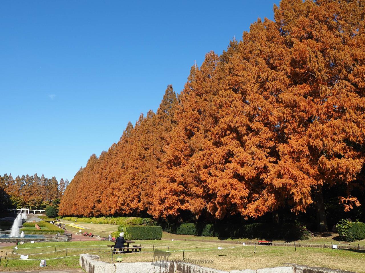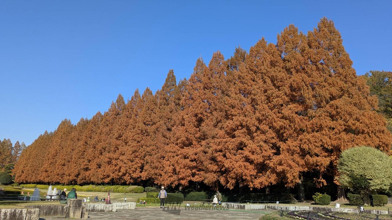 最新の紅葉リポート(神奈川県立相模原公園メタセコイア並木)