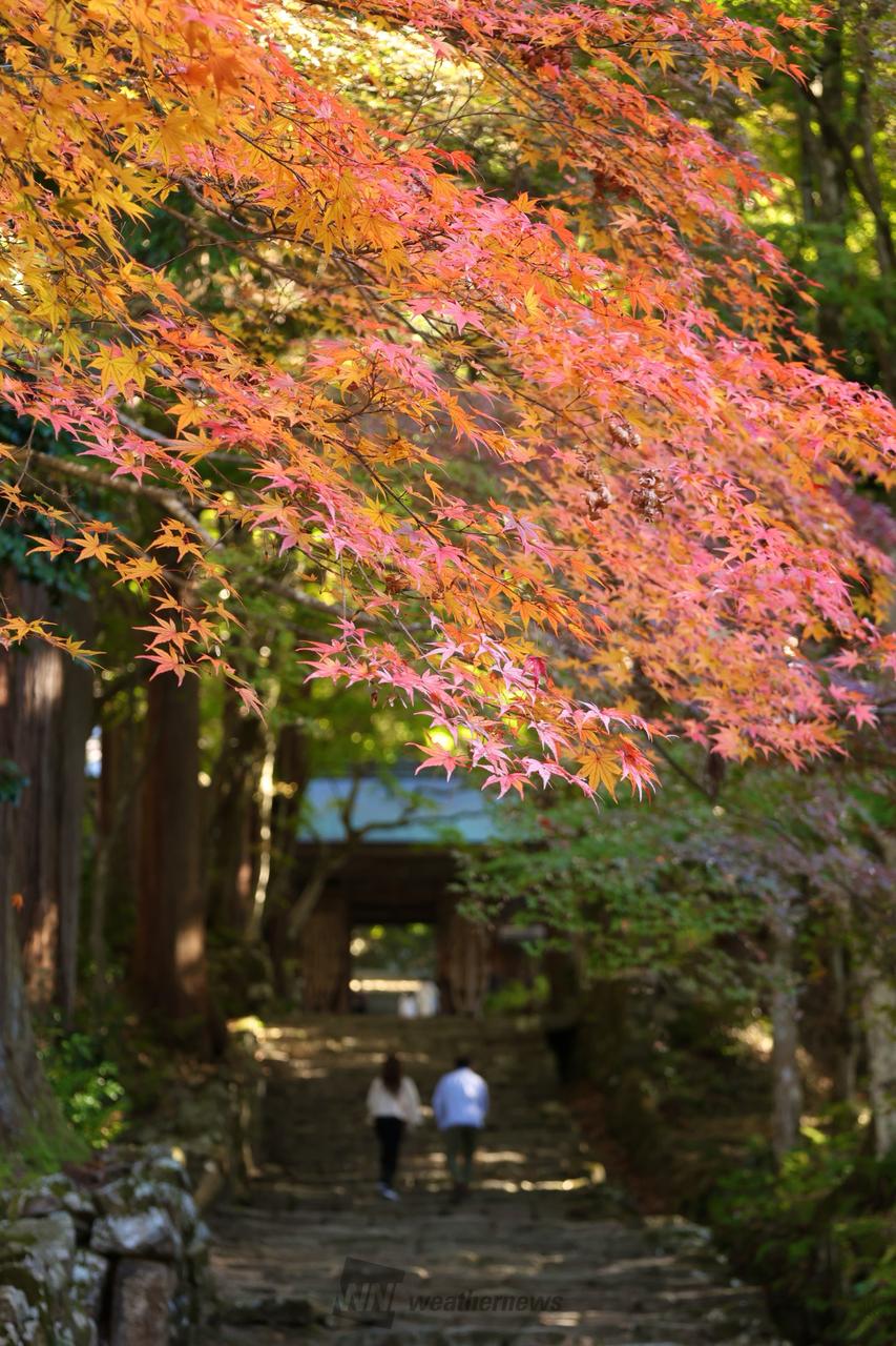 紅葉と参道色付いているもみじもありますが、全体的にはまだまだこれからのようです。