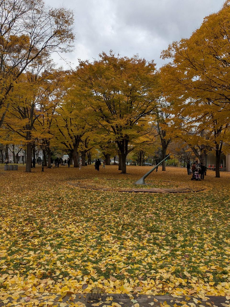 さっぽろテレビ塔から眺める紅葉が見所です。園内にはイサム・ノグチ作のブラック・スライド・マントラや彫刻などが並び、それらを鑑賞しながらの散策も楽しめます。