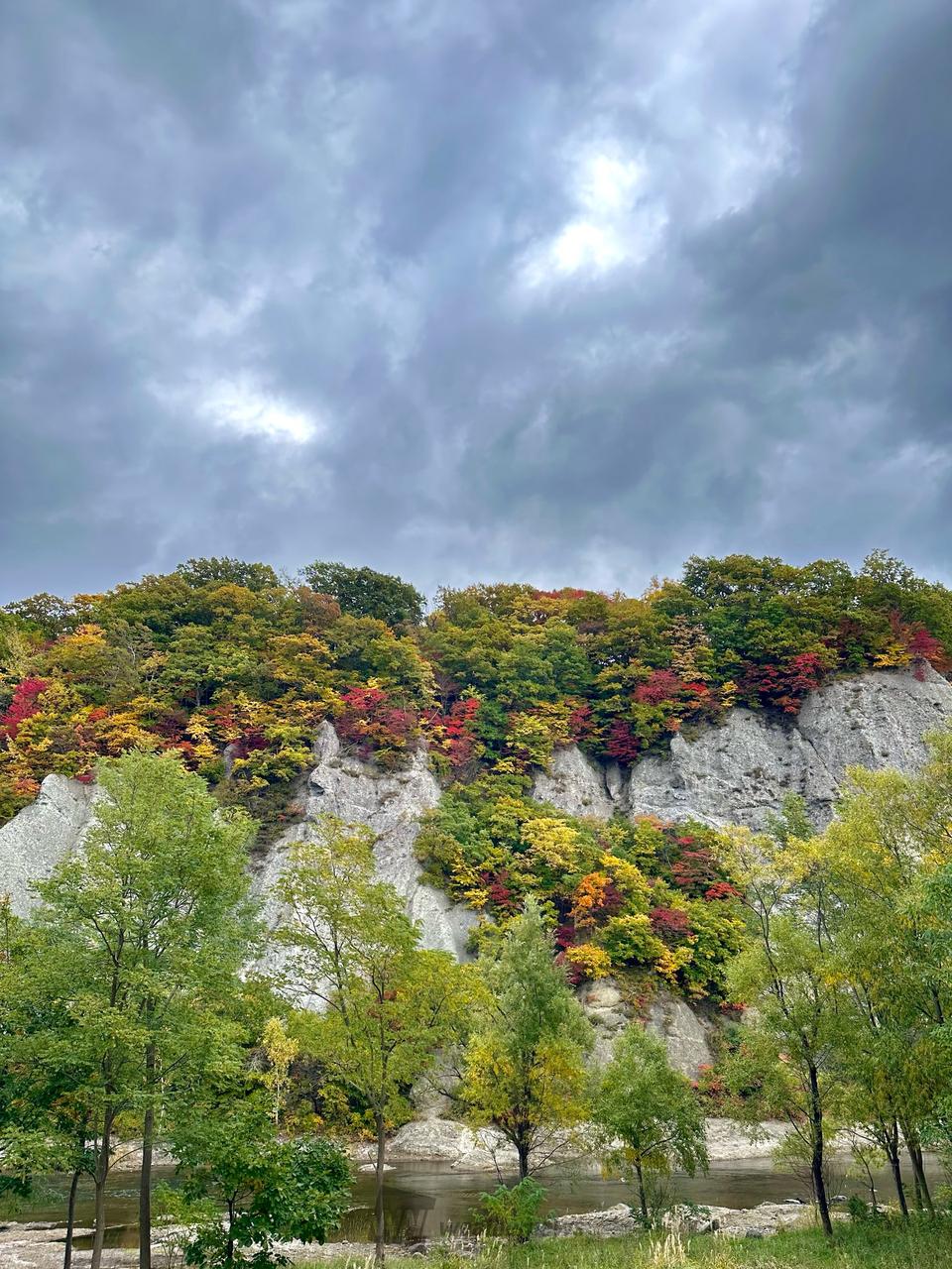 岩肌と紅葉のコントラストが美しい、おいらんぶち