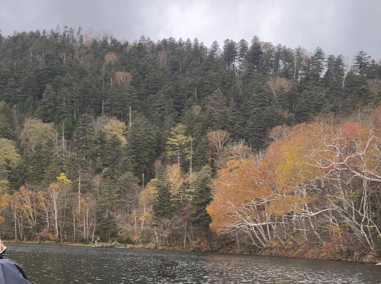 然別湖畔温泉ホテル風水(日帰り入浴1000円)※露天風呂からも紅葉が見られます。唇山(くちびる山)もきれいです。