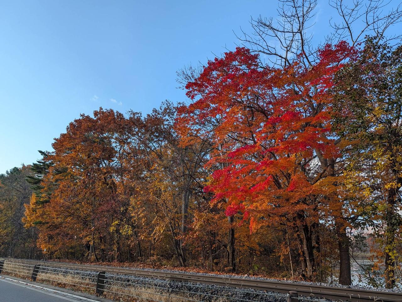 JR大沼公園駅から徒歩約5分、大沼公園広場からは遊歩道があり、ヤマモミジやハウチワカエデ、イタヤカエデ、ブナ、ナラ等、秋色に染まった木々と湖の織りなす景色をゆっくりと楽しむことができます。遊覧船やカヌーで湖上から眺めるのもおススメ。また、大沼湖畔をサイクリングやドライブで周遊すれば、紅葉のトンネルが楽しめます。