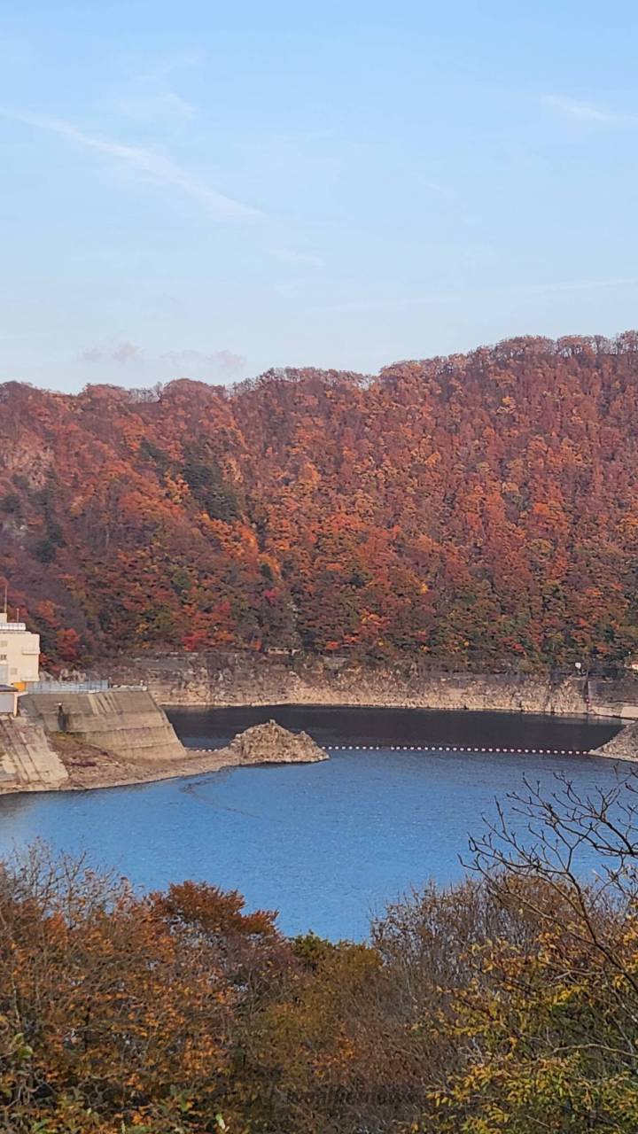 ほっとゆだ駅から徒歩約3分、銀河ホール裏にある湖畔ステージから、山々と錦秋湖を眺めることができます。