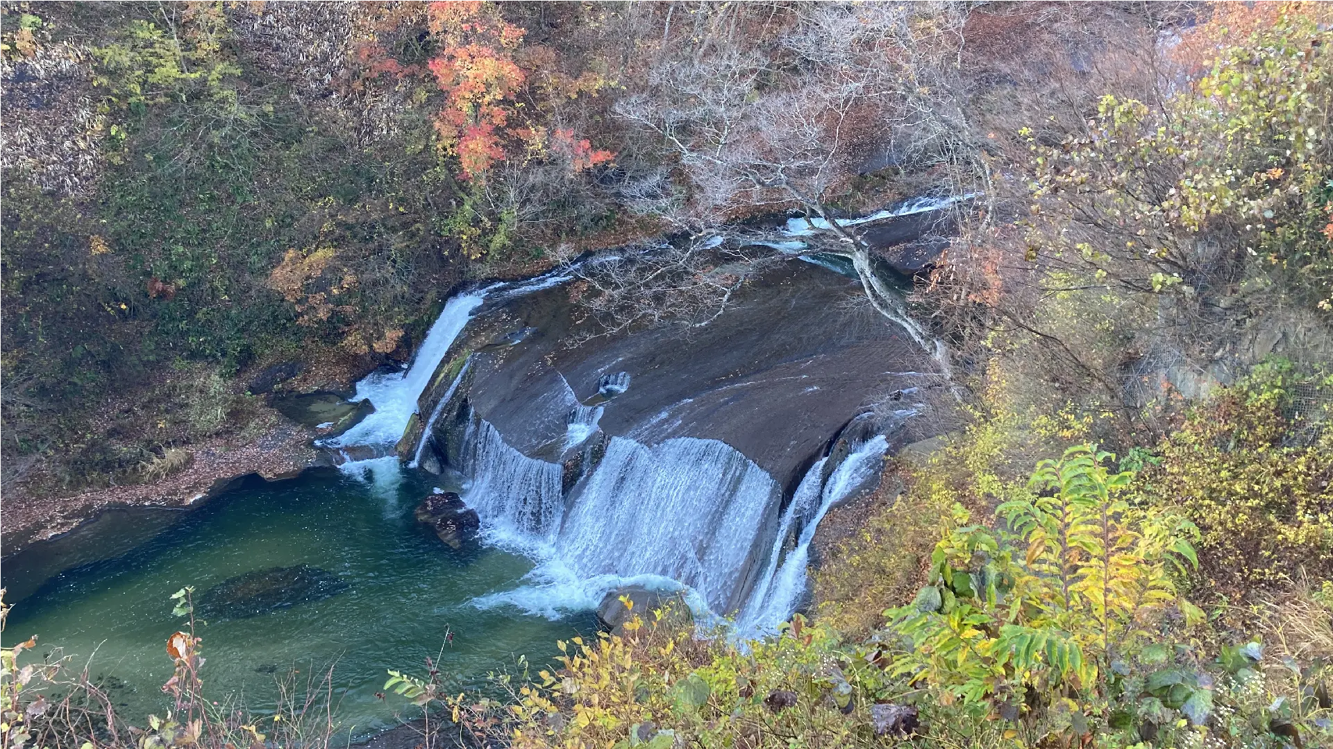 紅葉樹の多い山中七ヶ宿街道の中でも特に美しい紅葉スポットは、独特な形で二階滝と呼ばれ見る者を圧倒する滑津大滝と、青く澄んだ湖面に紅葉を映し出す長老湖は、遊歩道散策をしながら紅葉を楽しむことができます。やまびこ吊り橋から望む横川渓谷の紅葉も絶景です。長老神社は静かにたたずむ赤い鳥居が新たな紅葉スポットとして人気です。