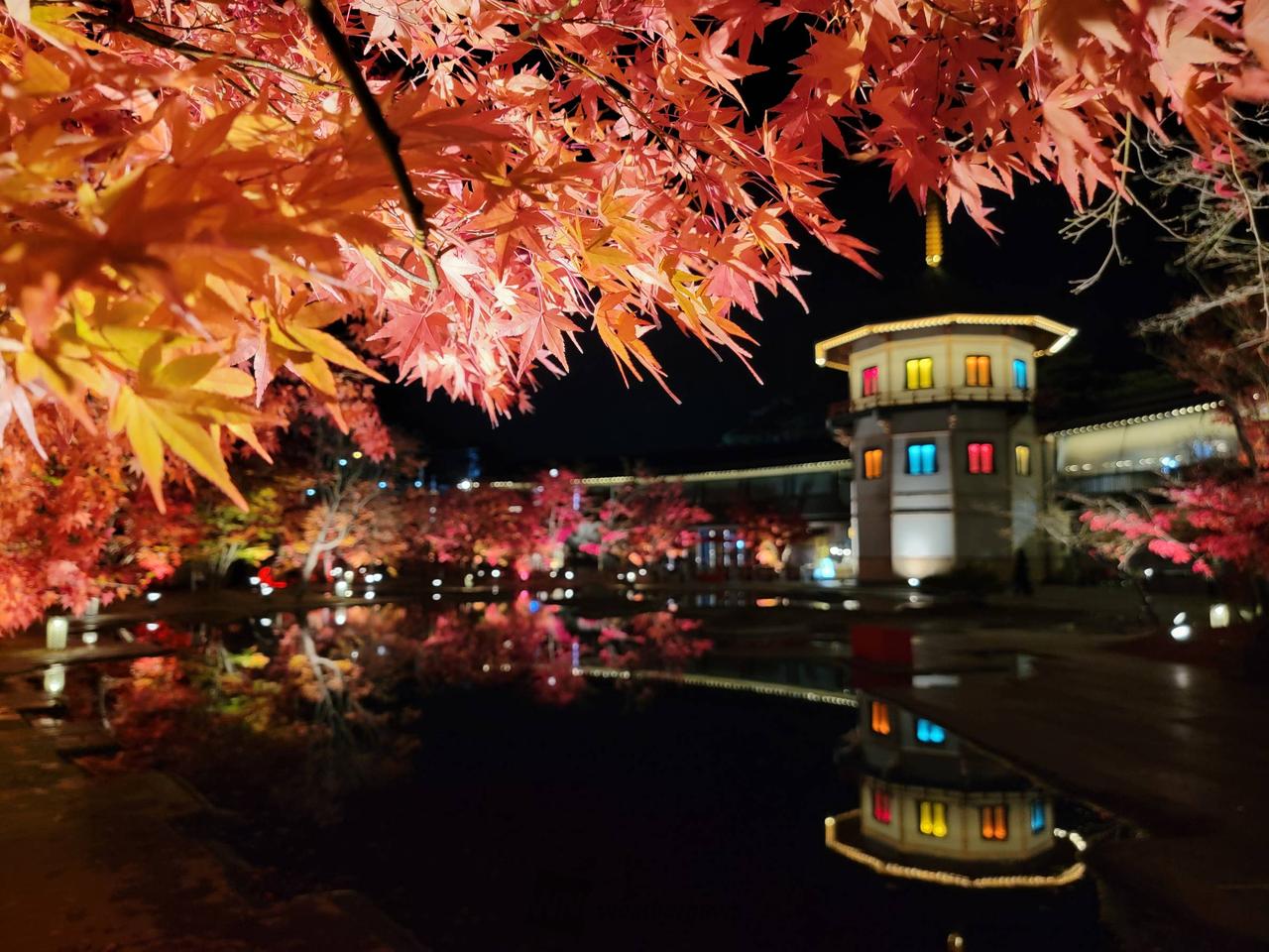 日本唯一の十角三重塔と紅葉ライトアップの競演2023年「JAPAN TRAVEL AWARDS」感動地に認定された宮城県松島離宮。その象徴でもある日本唯一の十角三重塔と真紅の紅葉が、特別に設置されたライトアップで幻想的に照らされます。松島湾を再現した水盤に映り込む、リフレクションの世界一般社団法人照明学会から2020年照明普及賞を受賞した、庭園の水面に色鮮やかな紅葉が映り込むライトアップは、幻想的な光景を創り出し訪れる人々を雅の世界へ誘います。屋上展望台から眼下に望む、紅く彩られた松島離宮庭園の絶景松島湾を一望できる屋上展望台からは、紅葉に包まれる松島湾を象った松島離宮庭園の絶景を眺めることができます。カリヨンベルの音色が、幸福への願いとともに秋夜の静寂を彩ります。幸福への願いと共にカリヨンベルの音色が彩る紅葉ライトアップは、大切な方との時間を優しく包み込みます。また2022年「恋人の聖地」に認定されたハート形プール周辺も美しく照らされ、思い出に残るひとときを演出します。