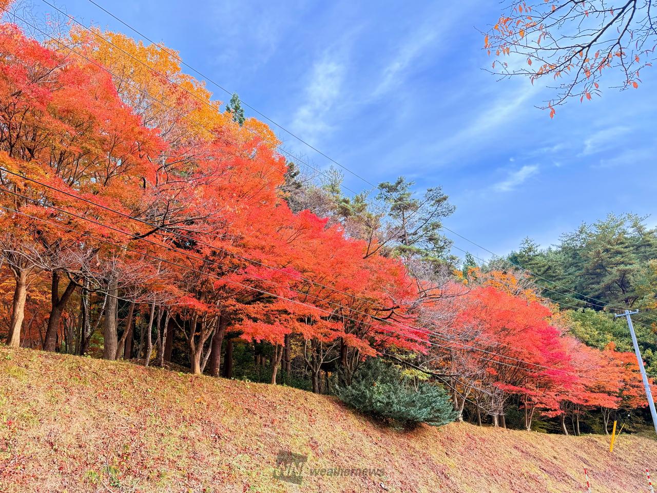 酒田市松山地区の背後を取り囲む外山一帯は、緑あふれる森と美しい庄内平野の眺めから「眺海の森」と呼ばれています。総面積300ヘクタールを占める広大な眺海の森が紅葉する景色は絶景です。