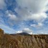 毘沙門沼の前のモミジと磐梯山、るり沼からの磐梯山
