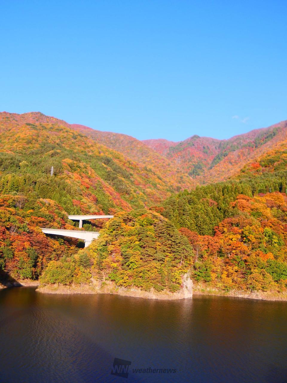 R121号沿いにある大川ダム、若郷湖には公園も整備されており、散策ができます。また、若郷湖を囲む山々の紅葉は見事です。
