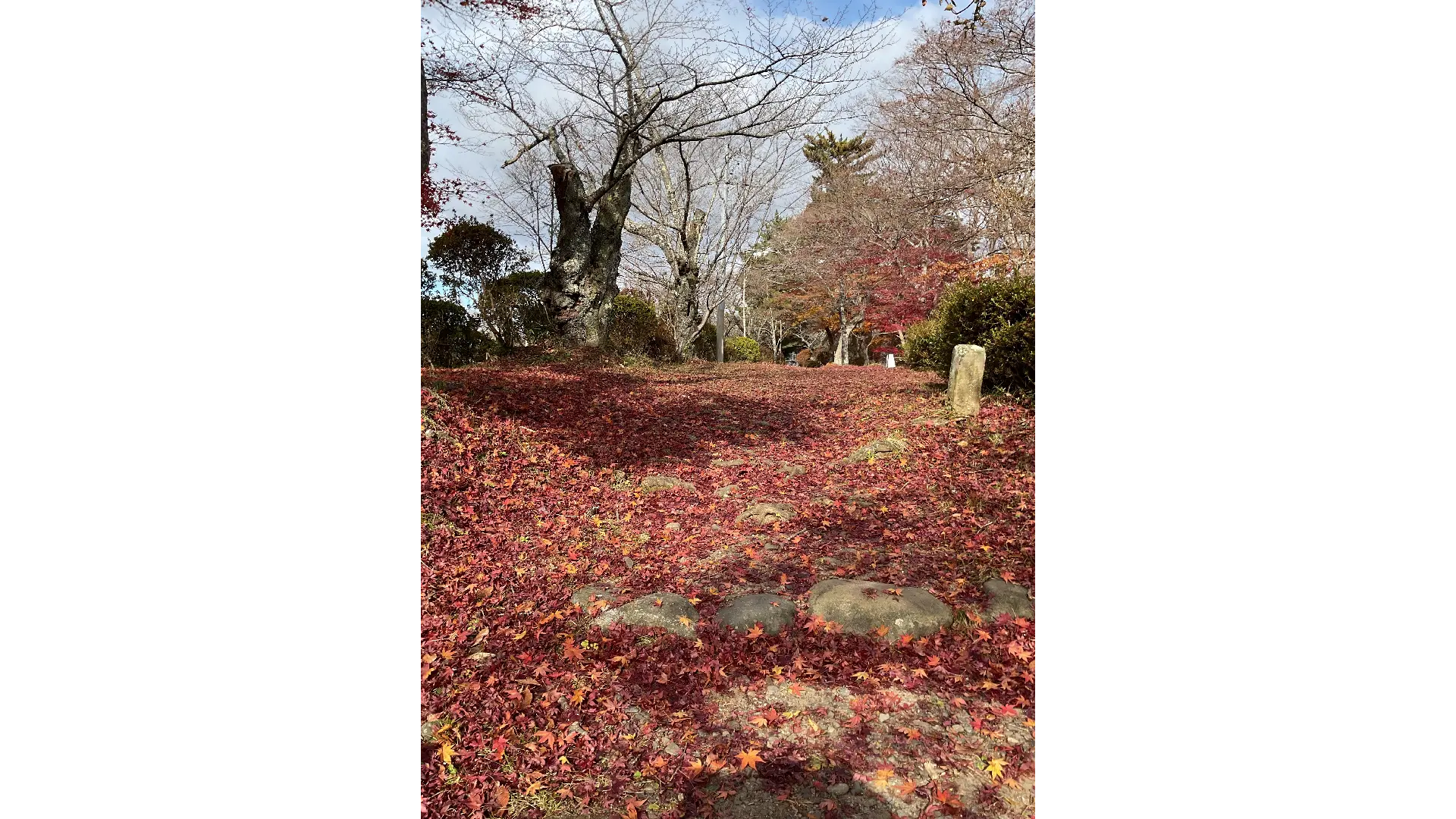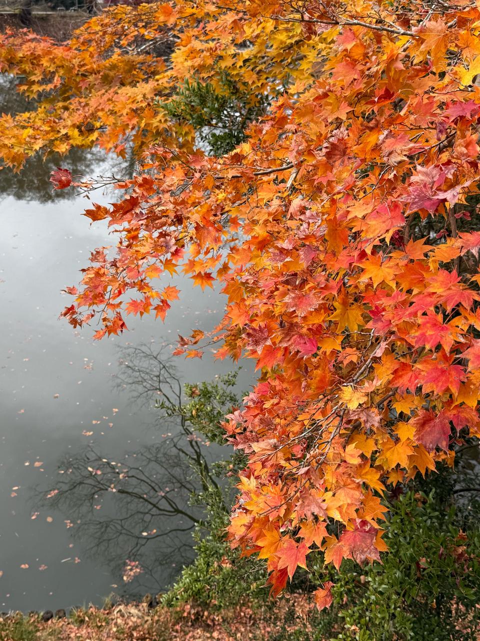 土塁のもみじがお堀の水面に映り込み優美な景色を堪能できます。特に大けやきが色づく姿はひときわ雄大です。