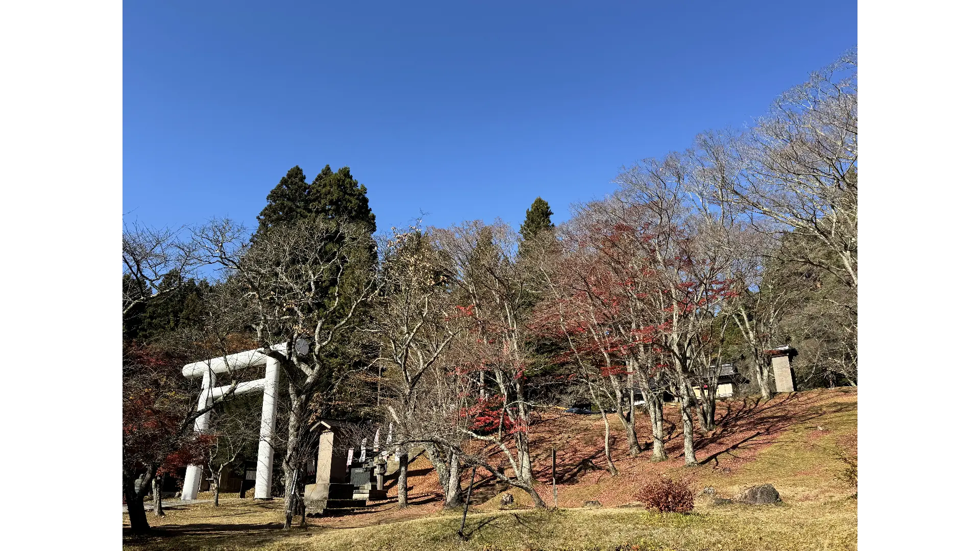 ▷會津松平家九代藩主・松平容保公が京都守護職を務めた縁で京都から移植されたと伝えられるイロハモミジ16本。▷境内の外から観ると鮮やかな紅の紅葉を、境内の中から観ると緑・黄・紅のグラデーションと空の青の調和を楽しむことができます。▷落葉後の真っ赤な紅葉絨毯。
