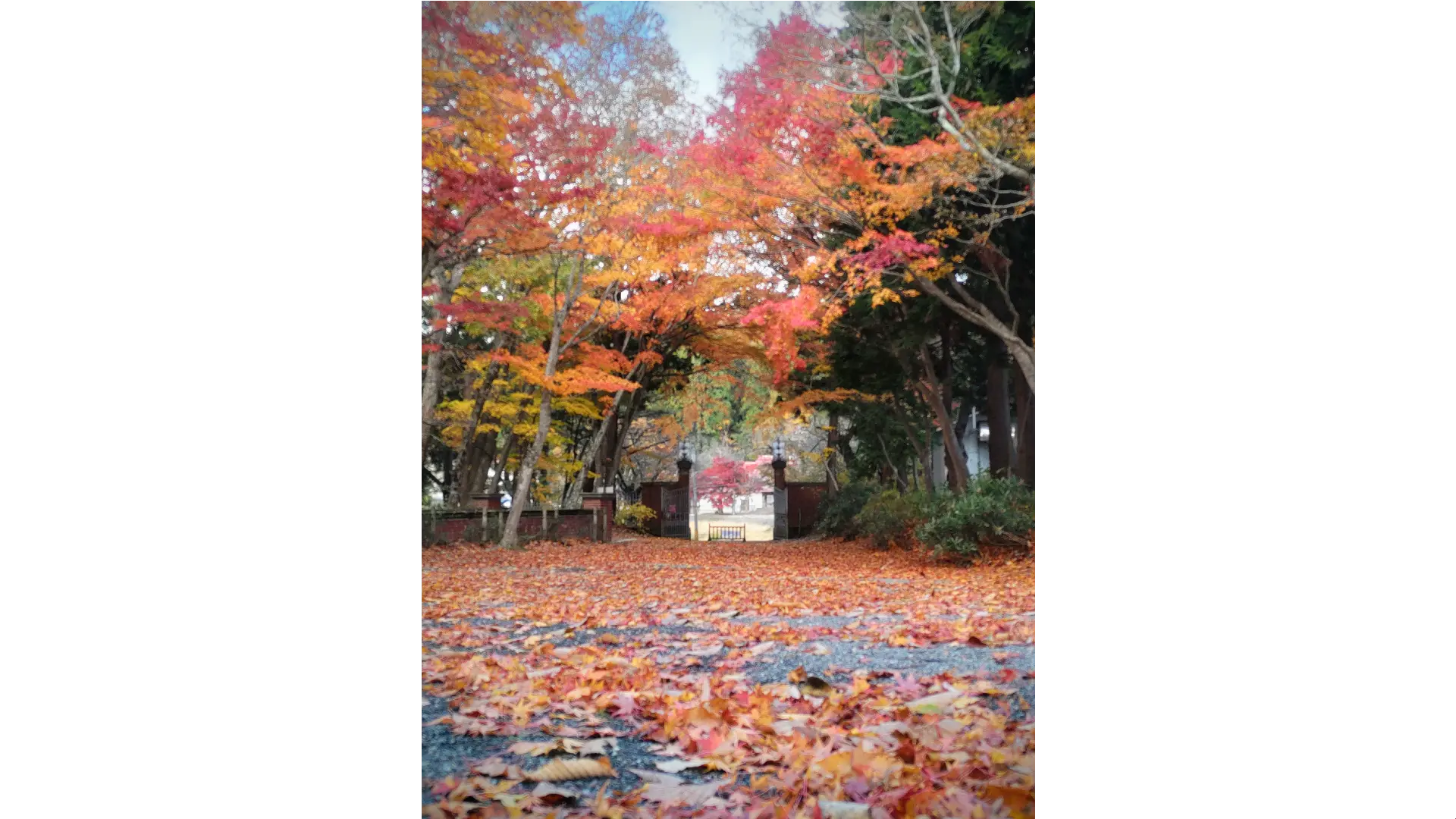 正門から本館までの通路のヤマモミジや南側の庭園からの天鏡閣とモミジのショットもおすすめ。