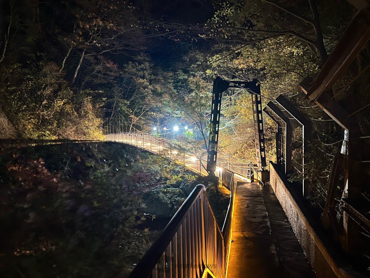 第1観瀑台からは正面に水しぶきを上げる滝の姿、エレベーターで第2観瀑台に昇れば滝の全景をご覧いただけます。令和5年4月には観瀑トンネルがリニューアルされ、さまざまな光の演出をお楽しみいただけるようになりました。