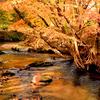 花貫渓谷沿いの小滝沢キャンプ場から汐見滝吊り橋付近の景色が見事です。特に約60mの長さの汐見滝吊り橋を渡ると、川沿いに生い茂る木々の枝が赤黄に染まり紅葉を身近に感じることができ、眼下に見える汐見滝と相まって絶景を味わうことができます。