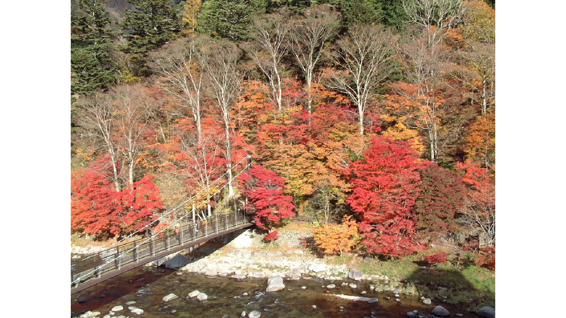 箒川渓谷沿い、塩原渓谷遊歩道(やしおコース、回顧コース)天狗岩、七ツ岩吊橋周辺、もみじ谷大吊橋、紅の吊橋