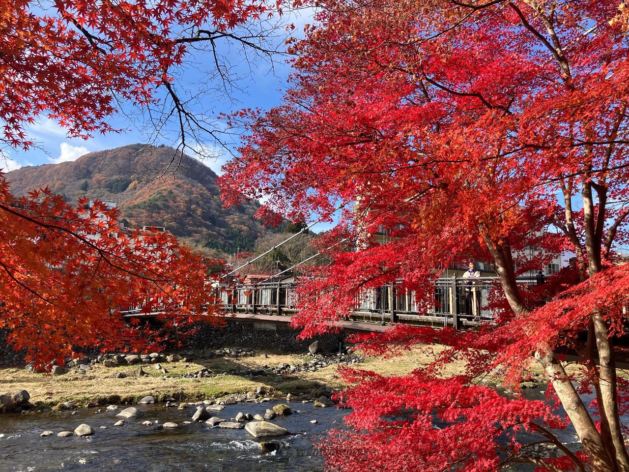 温泉街を流れる箒川と支流の景色は色とりどりの景色が楽しめます。紅の吊橋、鹿又渓谷、塩那スカイラインなど。