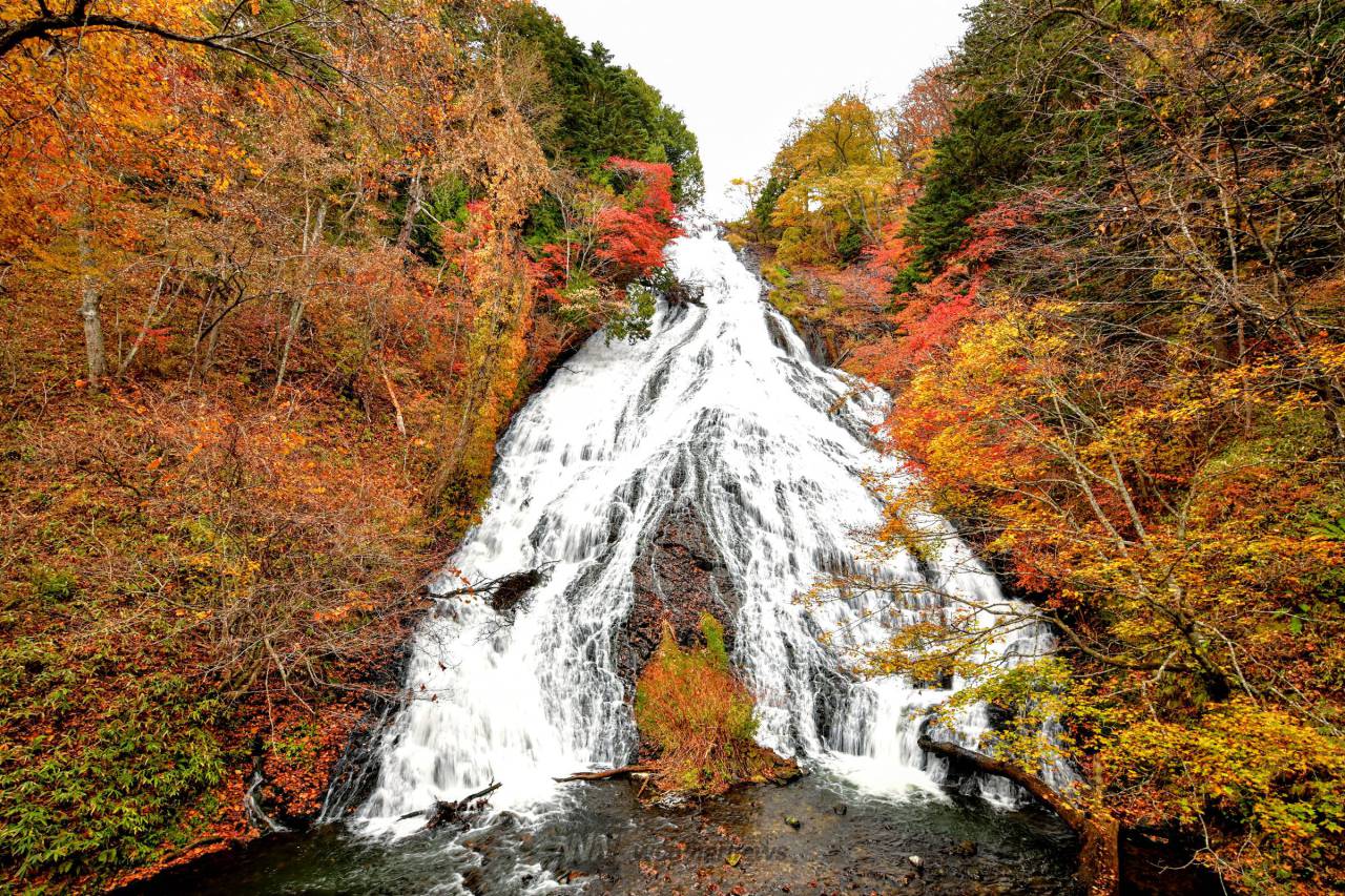 湯ノ湖の南端にある高さ70m、長さ110mの滝です。滝壷には観瀑台があり、迫力ある姿を眺められます。※ハイシーズンのため混雑が予想されます。混雑を避けたい方は早朝の訪問をお勧めします。時間に余裕を持ってお越しください。
