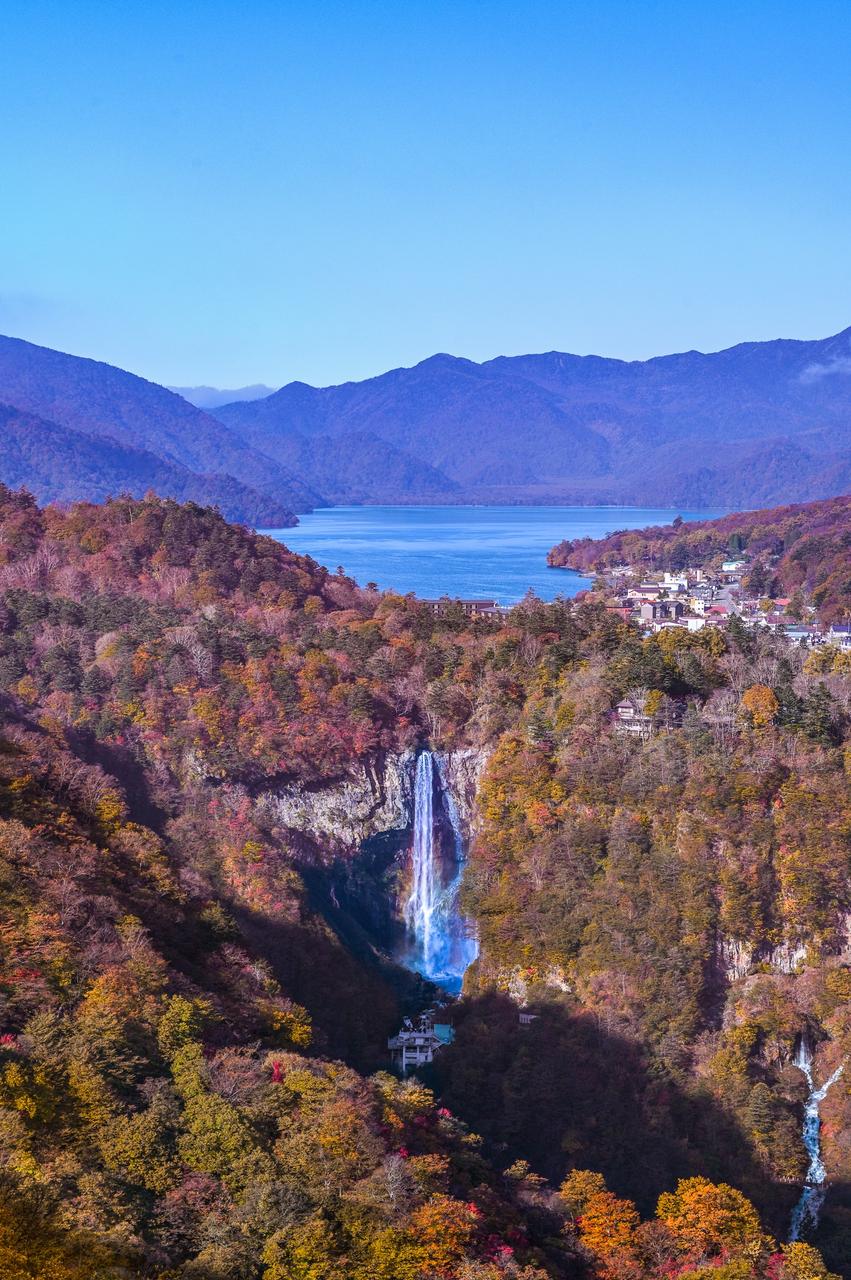 高さ97mをほぼ一気に落下する豪快さと、自然が作り出す華麗な造形美の両方をあわせ持つ華厳滝は、日本の三名瀑の1つになっています。流れ落ちる水の周りの木々が色づいて、素晴らしい眺めになります。※ハイシーズンのため混雑が予想されます。混雑を避けたい方は早朝の訪問をお勧めします。時間に余裕を持ってお越しください。※無料の観爆台はベビーカーOKです。