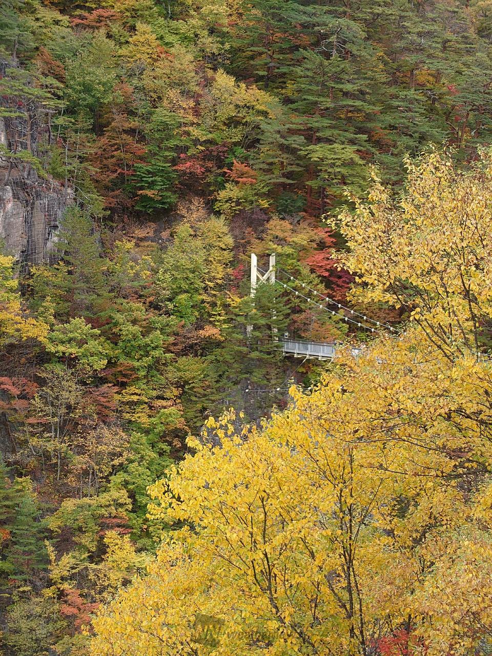 瀬戸合峡渡らっしゃい吊橋から、渓谷を見下ろすことができます。また、川俣ダム側から眺める渡らっしゃい吊橋も絶景。とちぎの景勝百選にも選ばれています。
