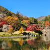 銀山平公園は、日光市足尾町の北西部に位置する市営の公園。公園全体が山と渓谷に囲まれ、モミジやカエデなど鮮やかな木々を見ることができます。また、公園内には、温泉施設「国民宿舎かじか荘」や「銀山平キャンプ場」などがあり、紅葉に合わせて日帰り温泉やキャンプが楽しめます。