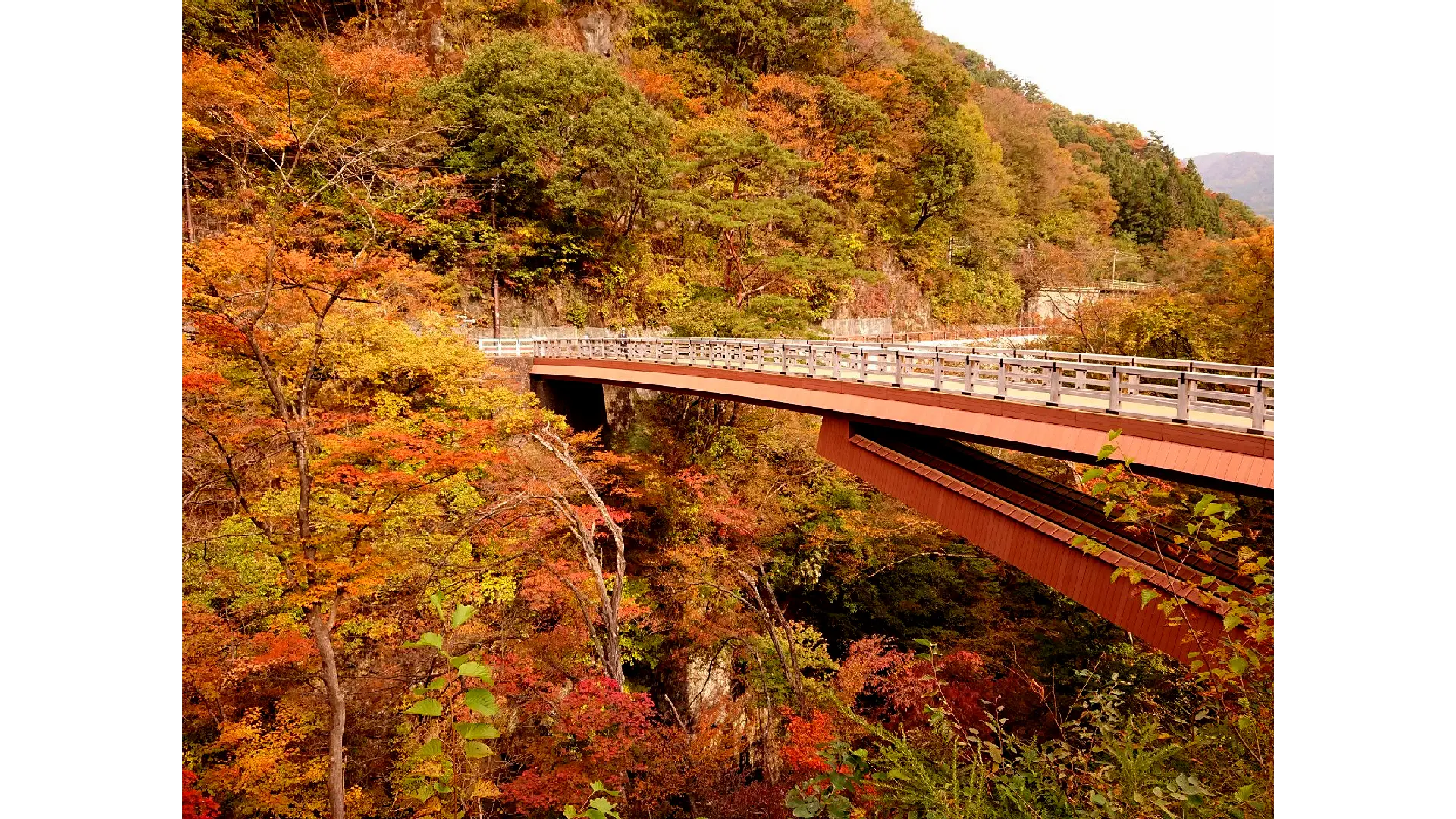 国指定名勝『吾妻峡』は関東の耶馬溪とも呼ばれる美しい渓谷です。遊歩道が整備されており、鹿飛橋や猿橋など橋の上からは渓谷の切立った崖と紅葉が一望できます。