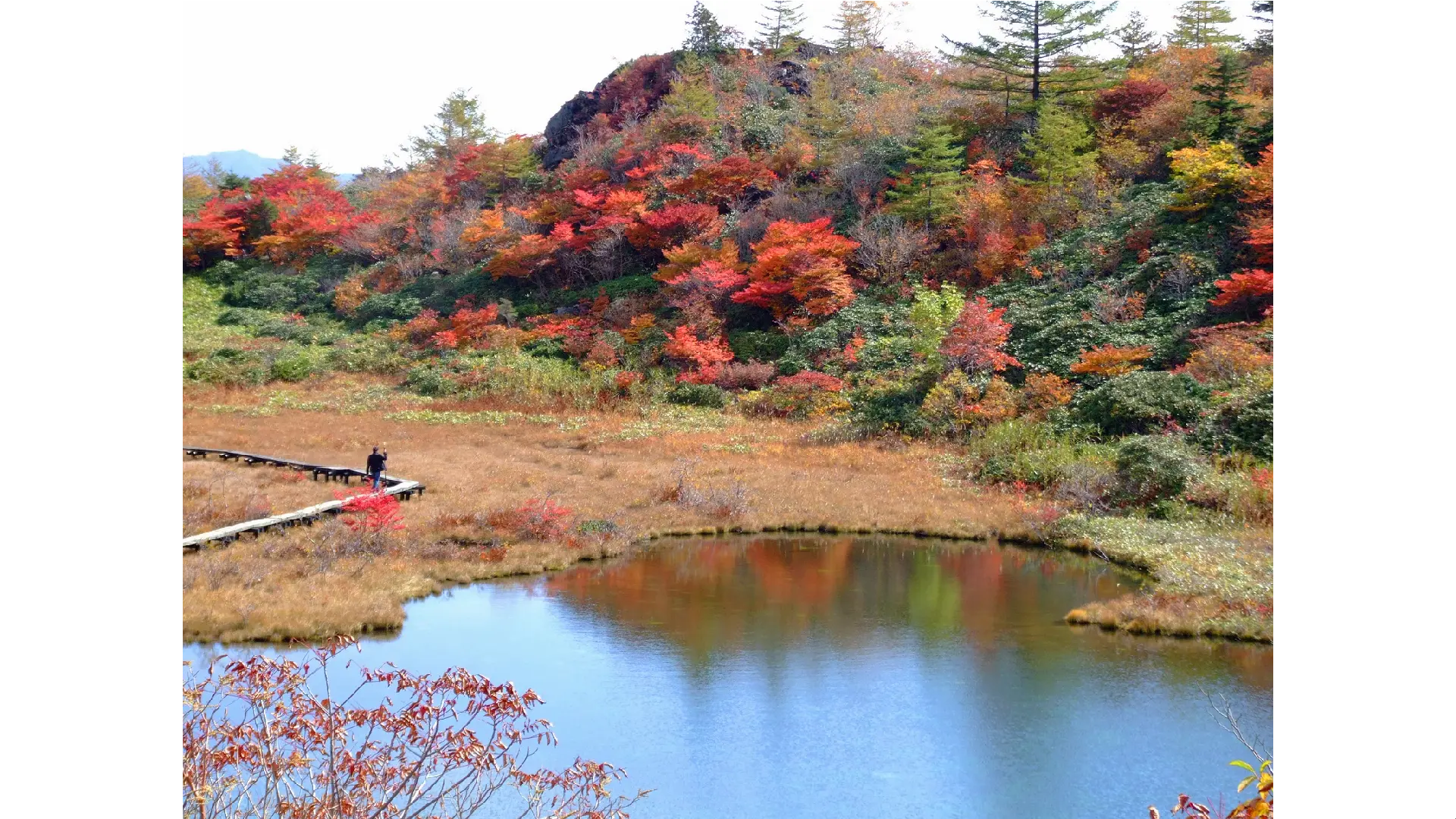 月面のクレーターの様な無数の噴気孔から強い硫化水素が噴出し、その周辺では硫黄の自然結晶も見られ、文字通り動植物を寄せ付けない異様な雰囲気を醸し出しています。武具脱の池周辺はシダ、ウルシやツツジなどがあり木道が整備されているので散策ができます。