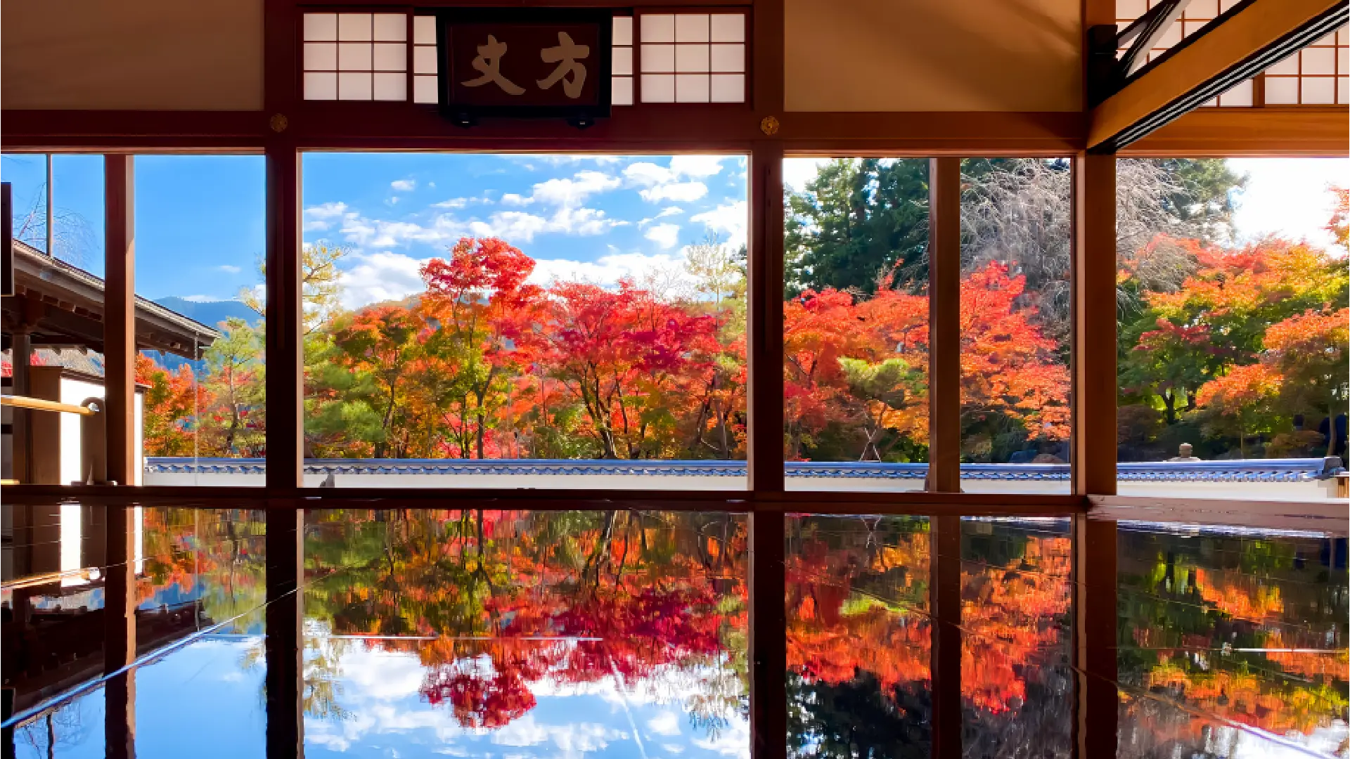 全国でも珍しい「床もみじ(紅葉リフレクション)」を、10月下旬より特別公開。鏡のように磨かれた本堂の床に、鮮やかなもみじが映り込む幻想的な景色が広がります。11月中旬には、境内の100本以上のもみじが色づき、紅葉の見頃を迎えます。関東百名山・鳴神山の紅葉も境内から望むことができ、山々と境内が織りなす「紅葉浄土」の世界を、ぜひご堪能ください。
