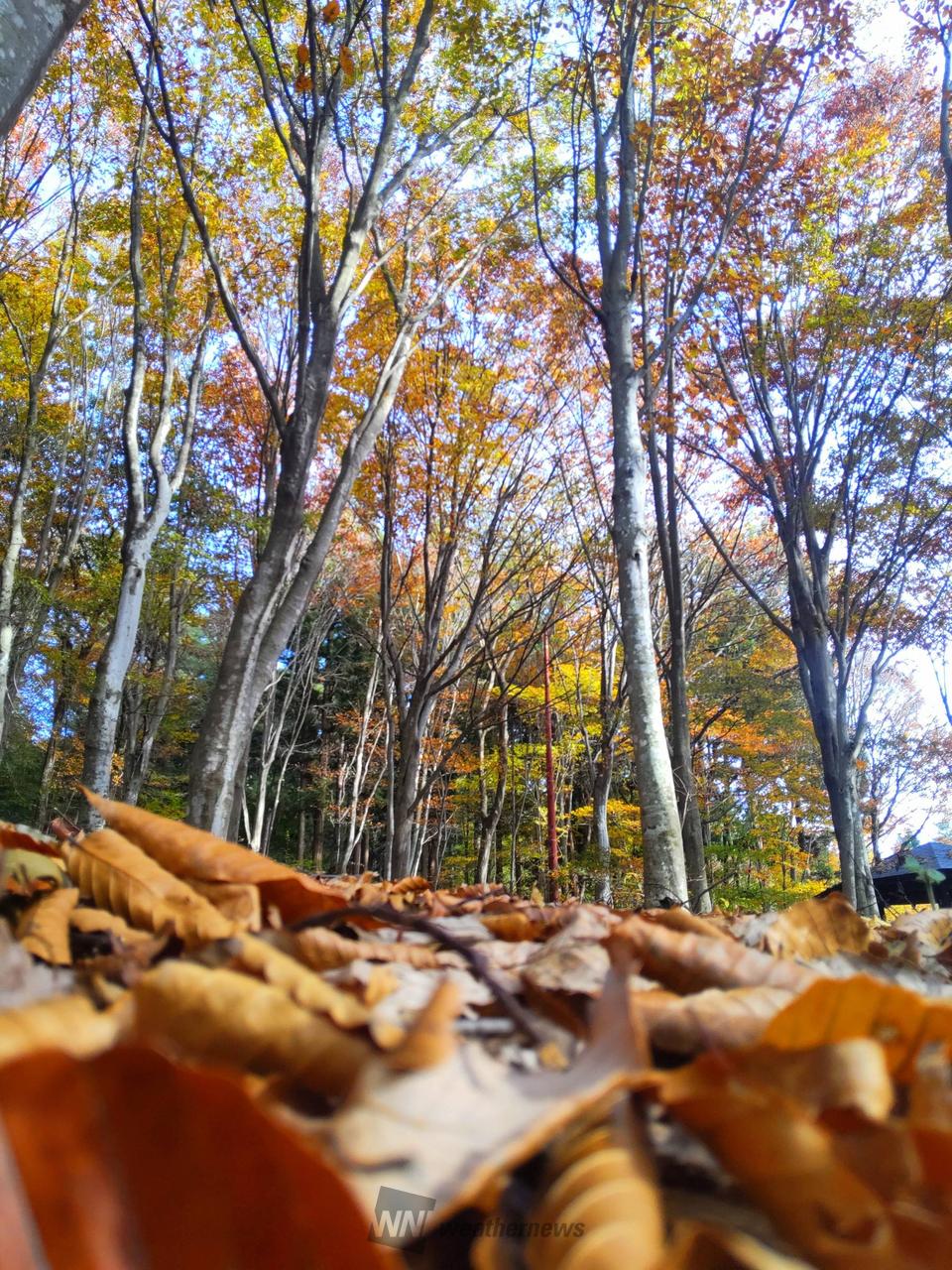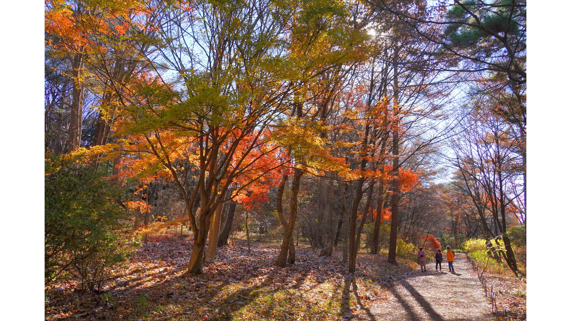 赤城山の西麓に広がる四季折々の豊かな自然を楽しむ森。60haの広大な敷地内には約500種類の草花や樹木が育ち、1800種類以上の昆虫や動物が生息しています。10月下旬から森の木々の葉は、赤、橙、黄と鮮やかな色に染まっていきます。世界三大紅葉樹のニッサ、ニシキギ、スズランの木、20種類以上あるカエデやブナ、コナラなどの木々が紅葉した森に、紫色のリンドウや黄金色のアワコガネギクといった花や紅色のガマズミの実なども森を彩ります。