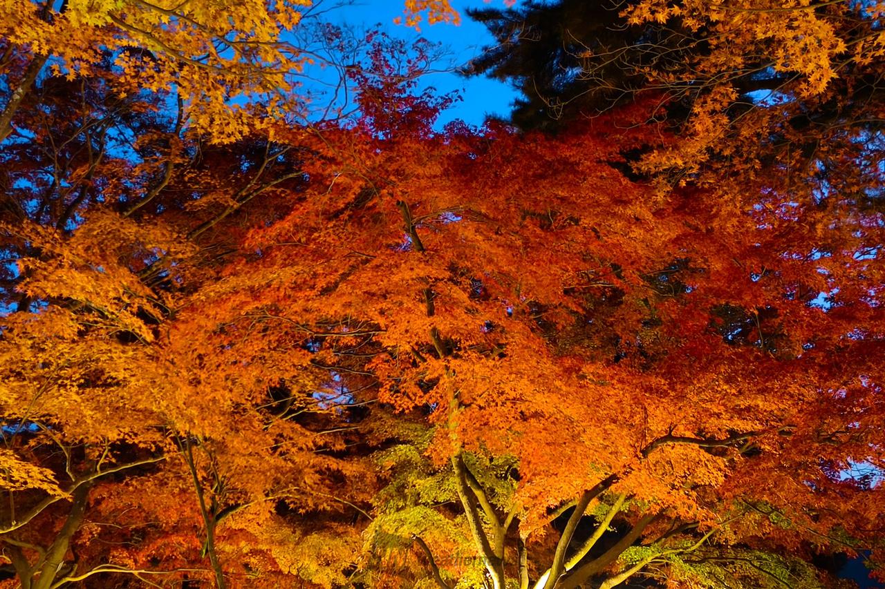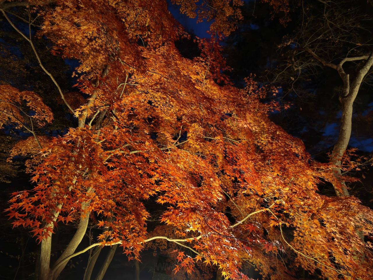 赤く色づくモミジを中心にライトアップされます。幻想的な夜をお楽しみ下さい。
