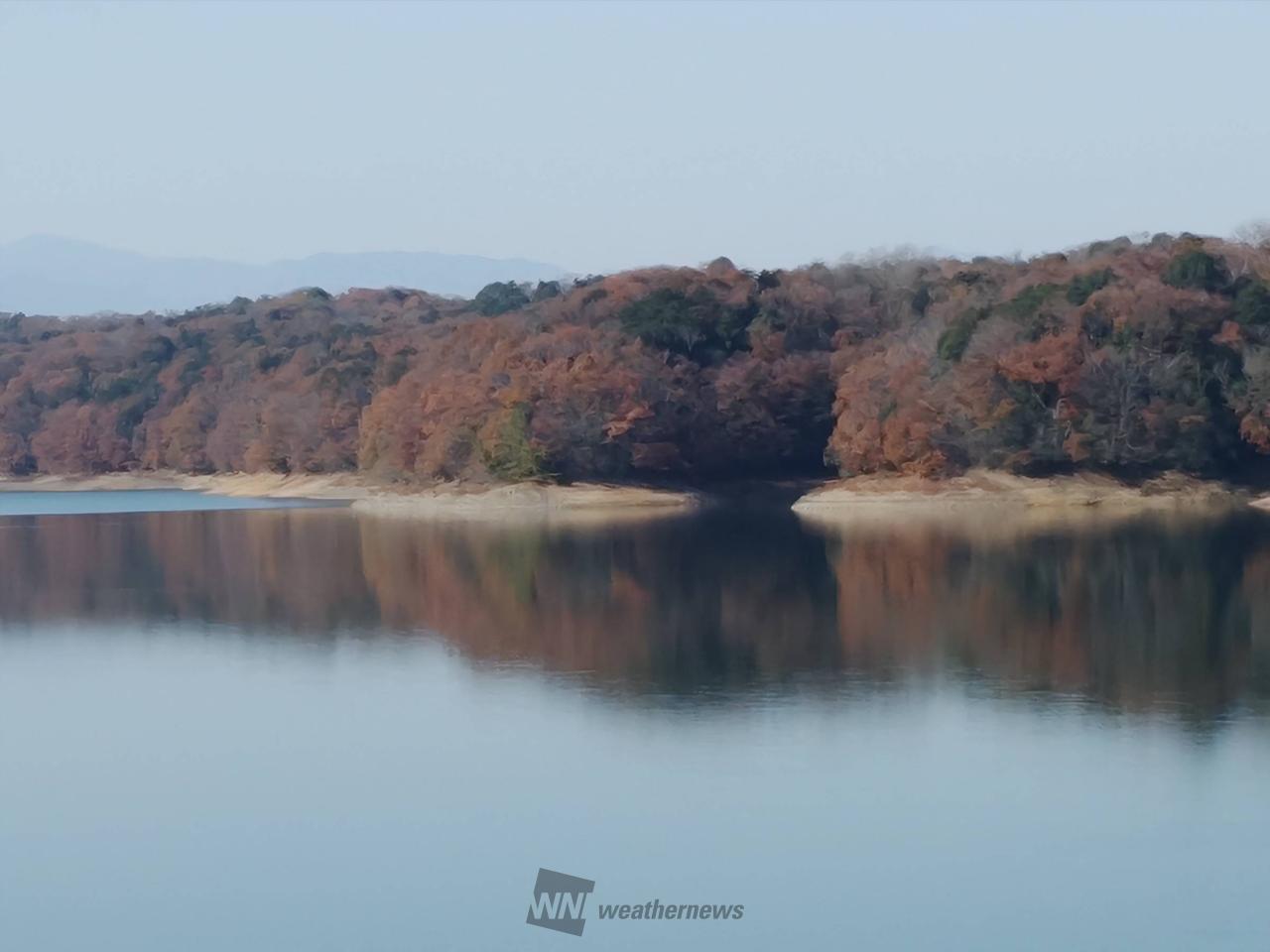 埼玉県にある、ダム湖百選に選ばれた絶景の湖。天気の良い日には富士山が顔を覗かせ、湖面に映る富士山も美しい。湖の周辺には遊歩道が整備されて散策もできる。例年11月下旬から12月上旬にかけては湖畔のカエデやコナラ、クヌギ、マツなどが色づき、見事な紅葉を見ることができる。紅葉の時期、デザインが特徴的な取水塔の背景に木々が色づいた風景は独特。湖面に紅葉も映り込み、絵画的な風景を楽しめる。