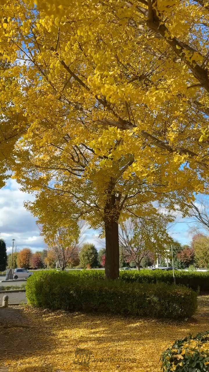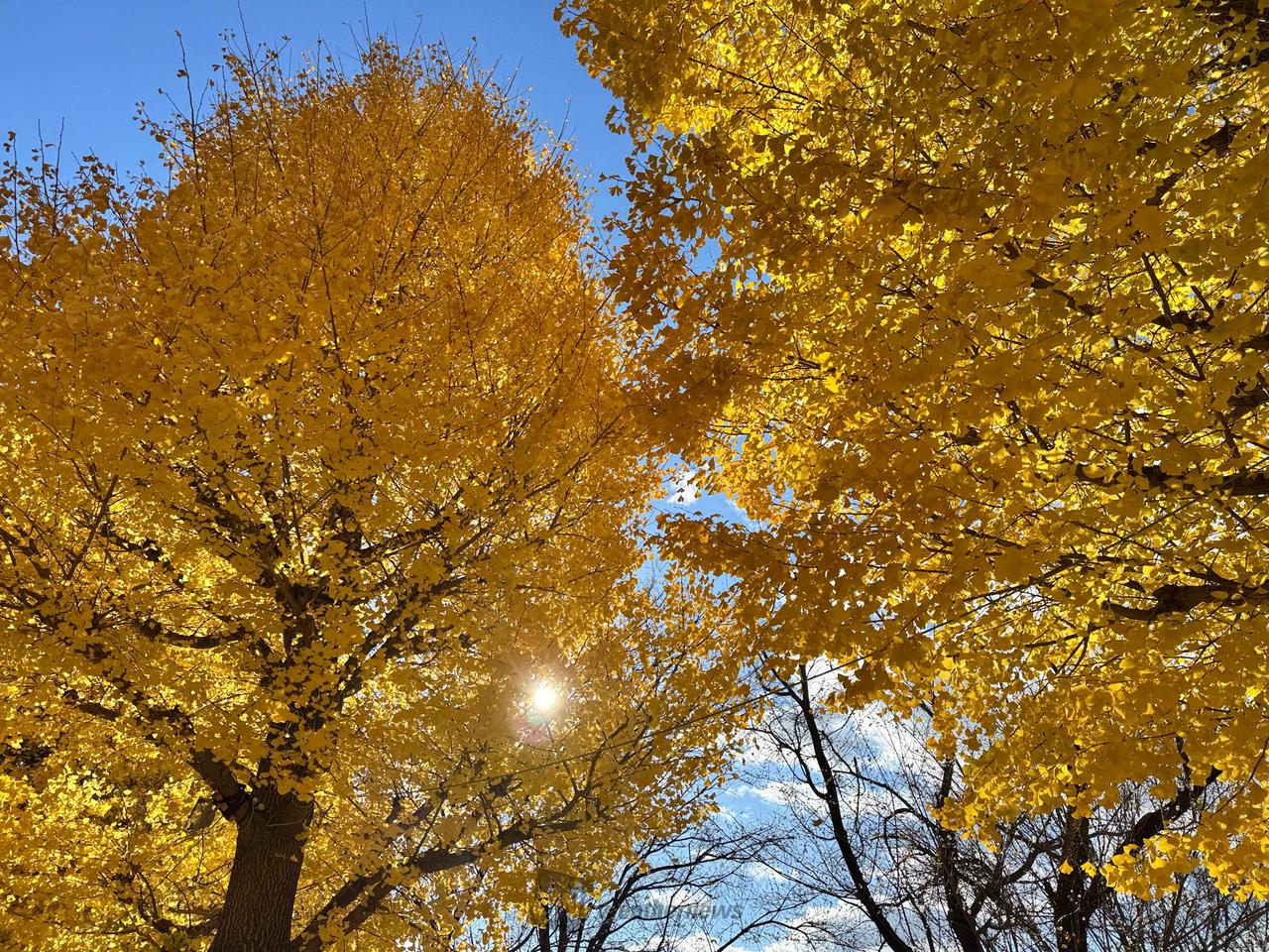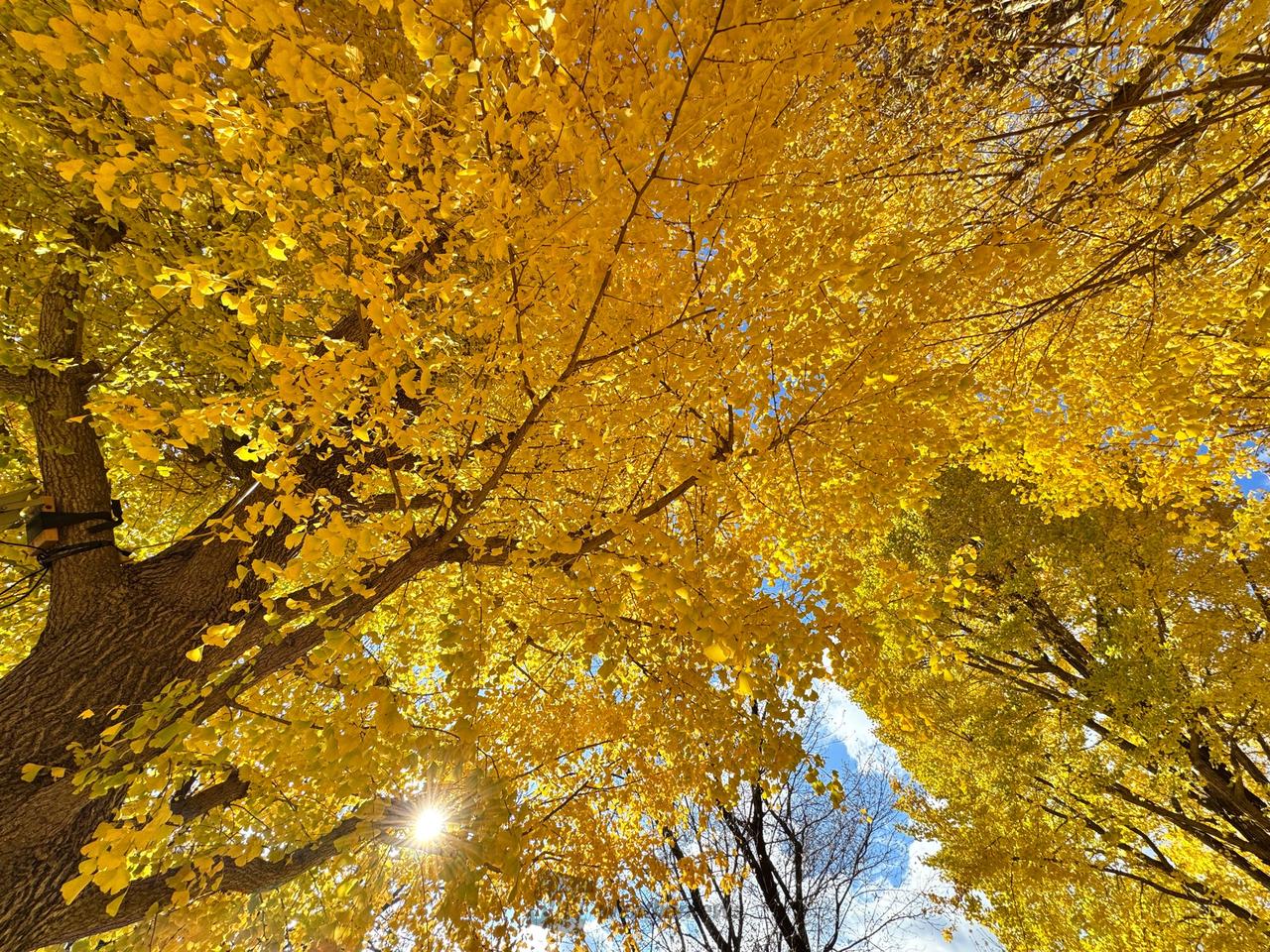 イチョウ並木が紅葉で黄色に染まります。