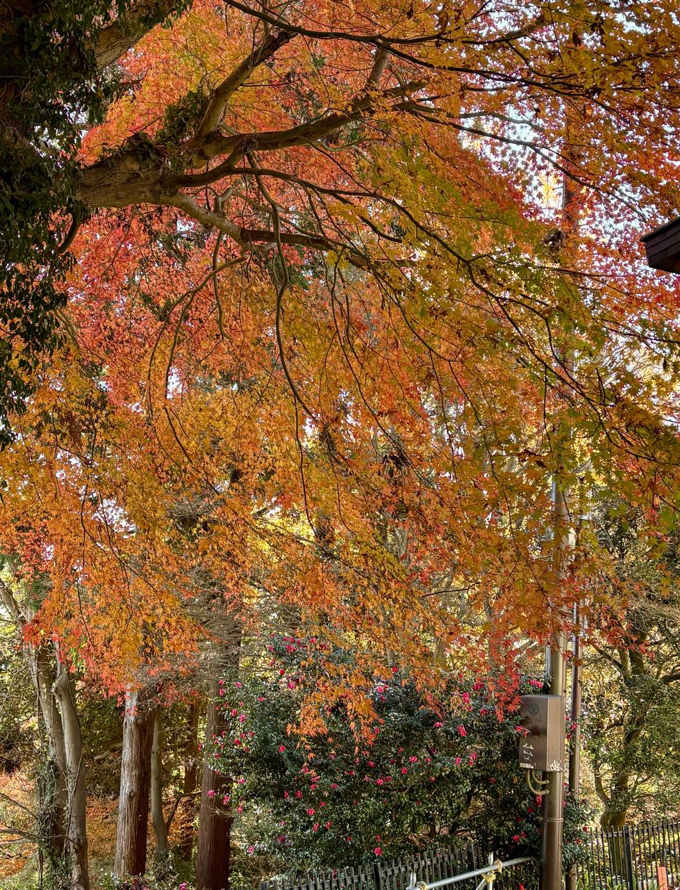 モミジ(カエデ)もありますが、ブナやイヌブナなどの自然林もあるため、やまぶき色にもなります。ケーブルカー沿線や薬王院周辺、山頂のモミジの紅葉が綺麗です。モミジの赤、ブナ、イヌブナの黄、常緑樹の緑がパッチワーク状に山を彩ります。