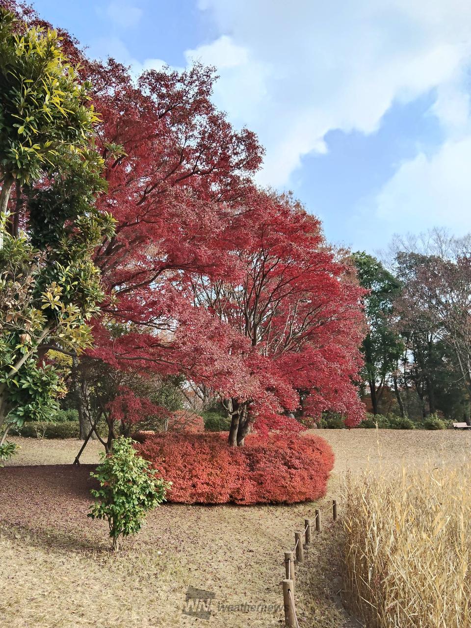園内2カ所のイチョウ並木、「かたらいのイチョウ並木(98本・300m)」と立川口「カナール沿い(106本・200m)」は、黄葉シーズンには黄金色のトンネルとなり園内でも人気の高いスポットです。「日本庭園」ではカエデ類(約300本)が紅葉します。その他、ケヤキやカツラ、ナンキンハゼなどの広葉樹も季節の彩りを添えます。それぞれに風情の異なる紅葉、黄葉をお楽しみいただけます。