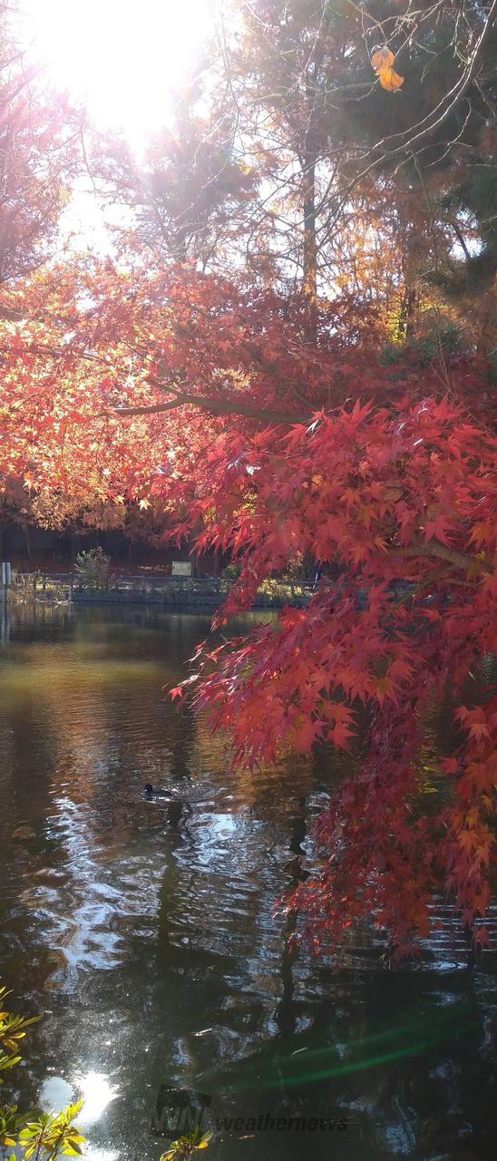 紅く色付くモミジのほか、イチョウやラクウショウ、メタセコイヤ等多くの落葉する樹木がそれぞれ色付きます。二つの池には紅葉と相前後して北の国から水鳥が帰ってきて一段と賑わいを増します。
