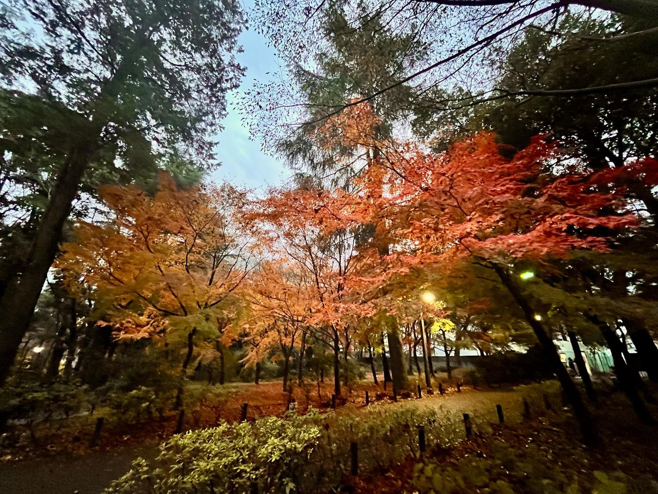 六角堂前の上池周辺はラクウショウの森です。レンガ色に紅葉し、落ちた葉が地面を色づける景色は美しいです。