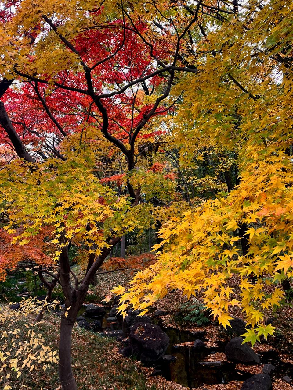 北の丸公園は、旧江戸城北の丸に由来し、歴史と文化の残る森林公園として、昭和44年に公開されました。公園の西側に位置する「モミジ山」には、イロハモミジやオオモミジ、ヤマモミジ等がまとまって植えられており、例年11月下旬から12月上旬になると紅葉がピークを迎えます。