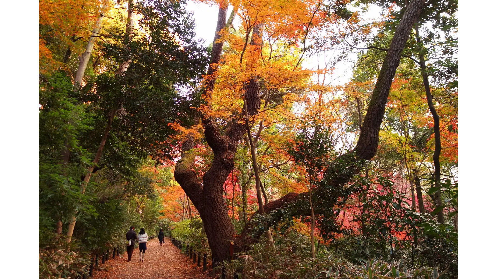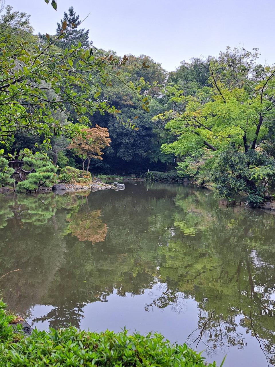 都会の真中にある緑のオアシスで美しく紅葉します。池の周りのモミジやイチョウが特に美しいです。